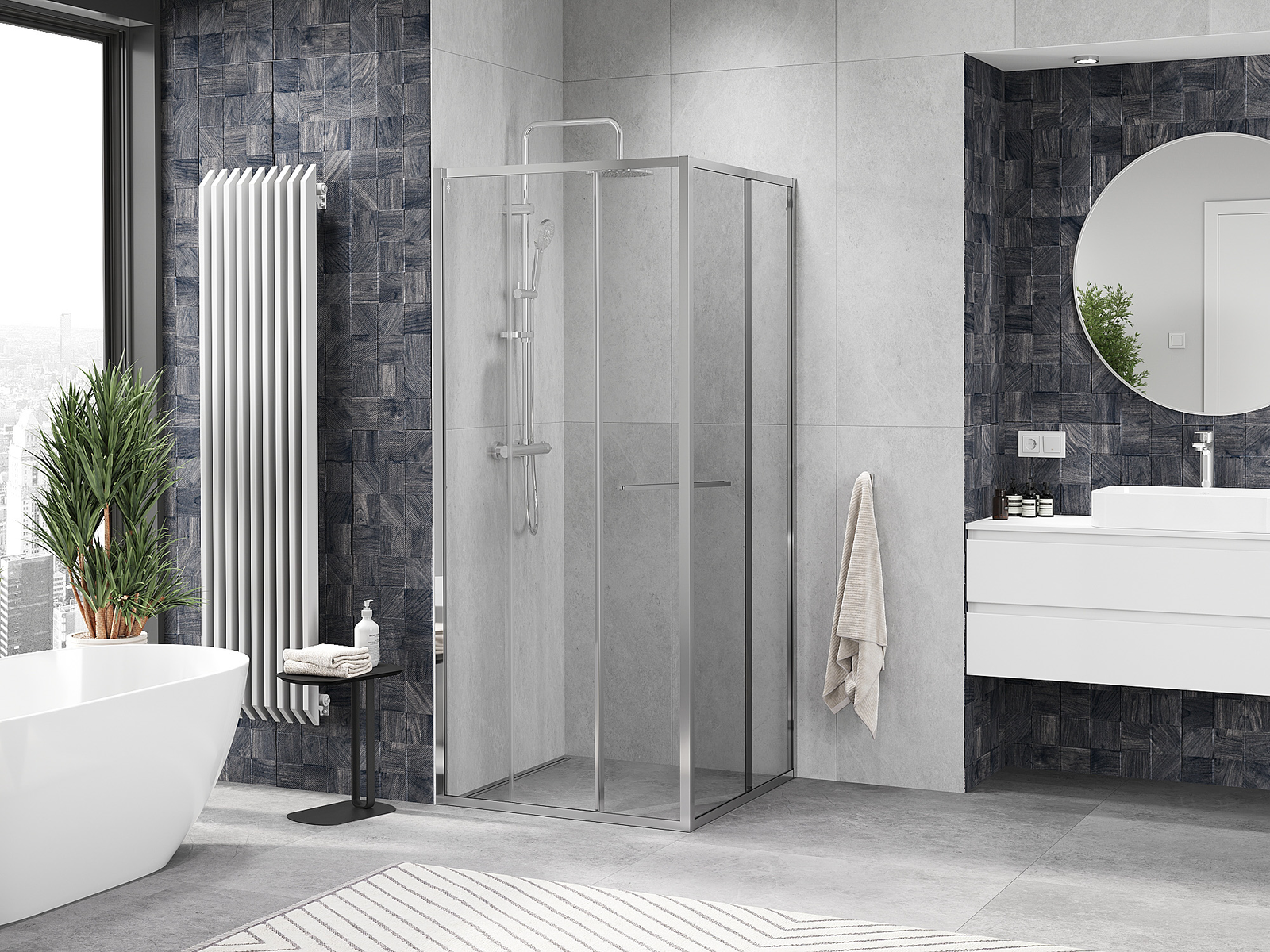Mexen Linea je elegantní posuvná sprchová kabina, která nabízí prostornost a styl díky rozměrům 100x100 cm a výšce 200 cm. Transparentní tvrzené sklo o tloušťce 6 mm zajišťuje trvanlivost a moderní vzhled. Univerzální montáž umožňuje instalaci jak na vaničku, tak přímo na dlaždice. Chromovaná povrchová úprava a hliníkový profil dodávají eleganci, zatímco povlak usnadňující čištění a systém nivelace nerovností stěny garantují pohodlí při používání. Magnetická lišta a elastomerová těsnění účinně odvádějí vodu a zajišťují těsnost. Vodicí lišty s možností nastavení délky a hliníkový prah těsnící zvýrazňují funkčnost kabiny.