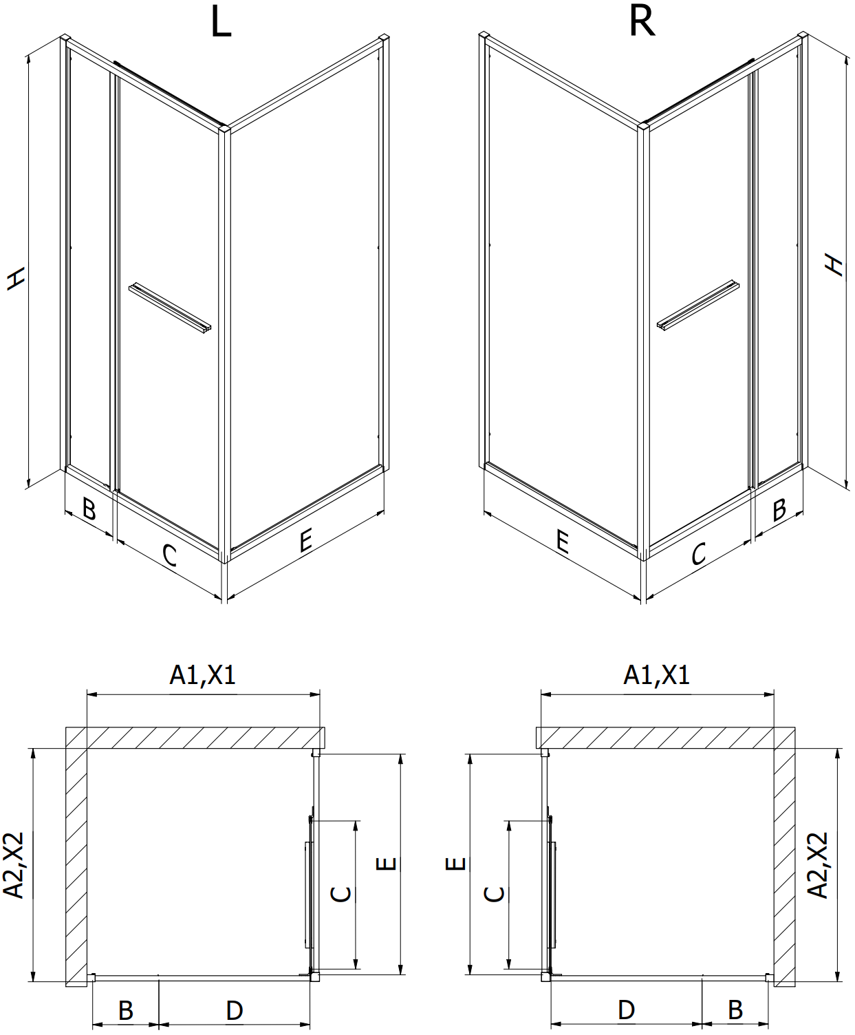 Sprchové kouty, dveře a stěny jsou standardně přizpůsobeny pro montáž na sprchové vaničky určitých rozměrů. Právě tyto rozměry jsou uvedeny v názvu nebo popisu výrobku. Je však třeba mít na paměti, že skutečné rozměry prvků se mohou mírně lišit od nominálních hodnot. V případě plánované instalace přímo na podlahu se doporučuje pečlivě zkontrolovat vnější rozměry a uspořádání prvků podle technického výkresu.