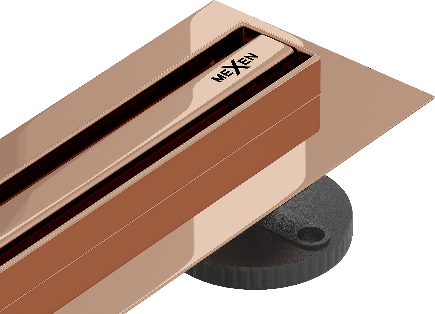 Mexen Flat 360° Slim otočný liniový odtok 110 cm, růžové zlato - 1641110