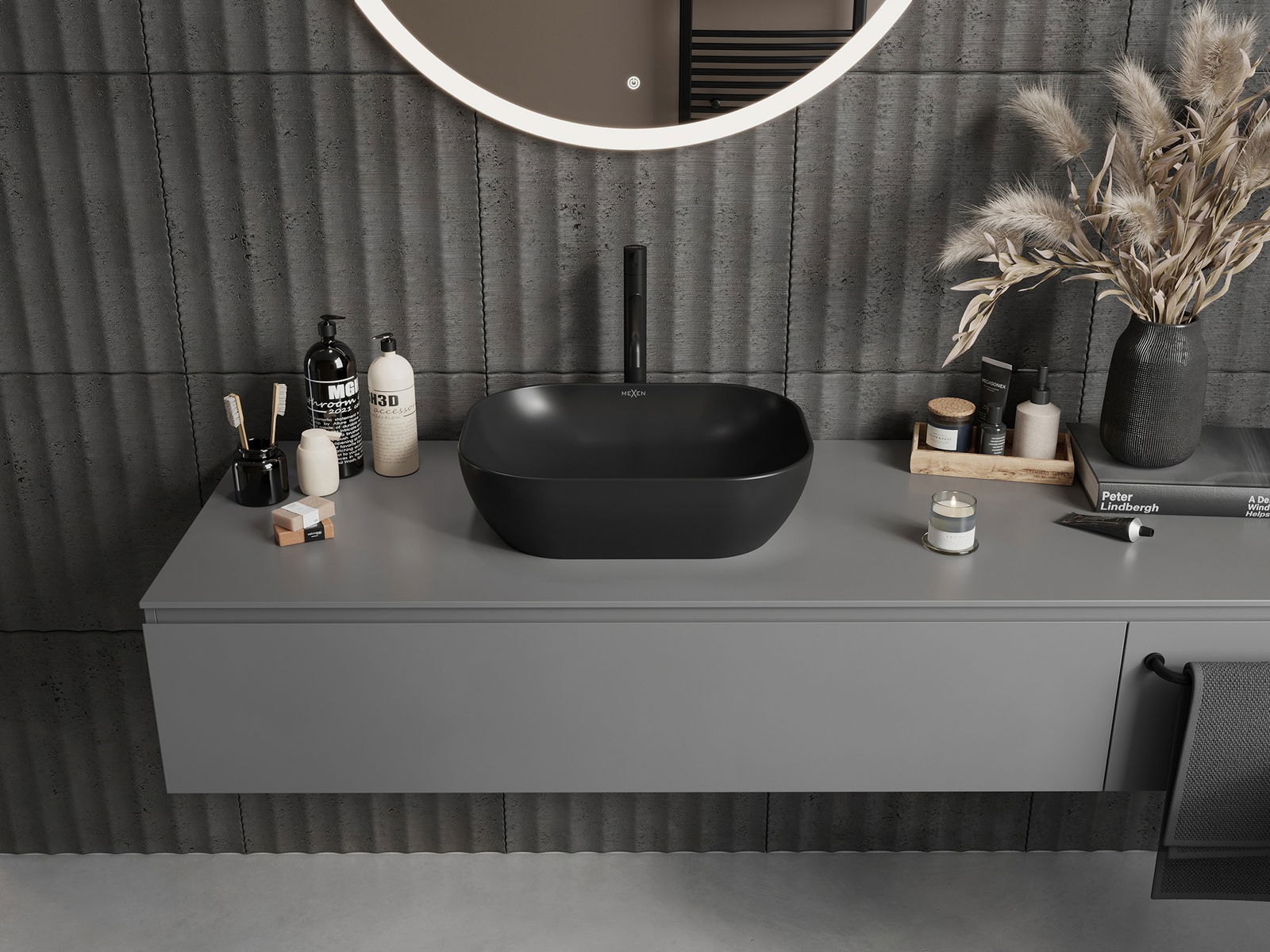 Matný povrch keramiky dokonale podtrhuje charakter barvy produktu, dodává mu jedinečnou a výraznou povrchovou úpravu. Jemná struktura matné keramiky přináší do koupelny eleganci, čímž vytváří estetický prostor.