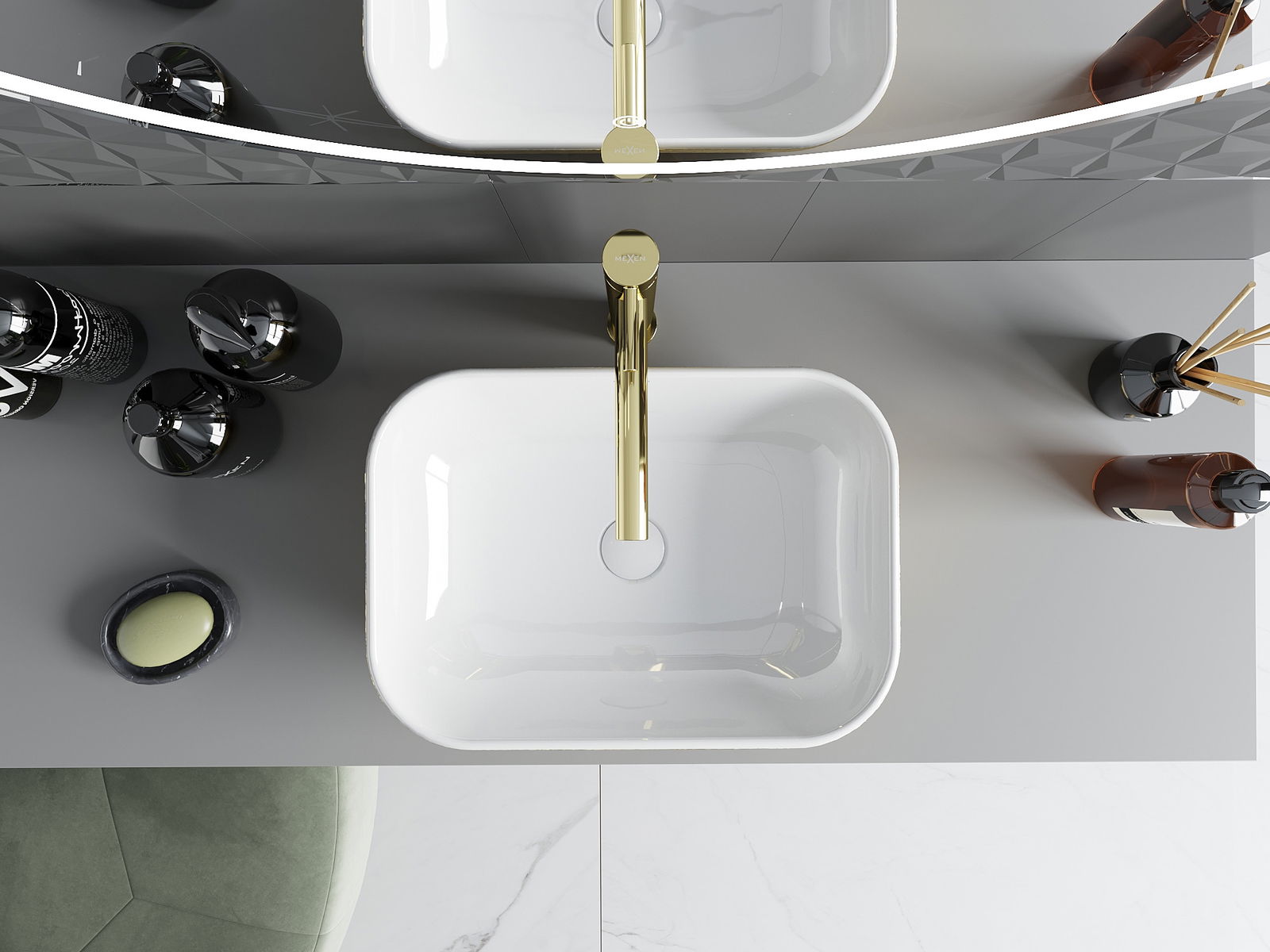 Mexen Rita umyvadlo na desku 45 x 32 cm, bílá/zlatá linie - 21084553