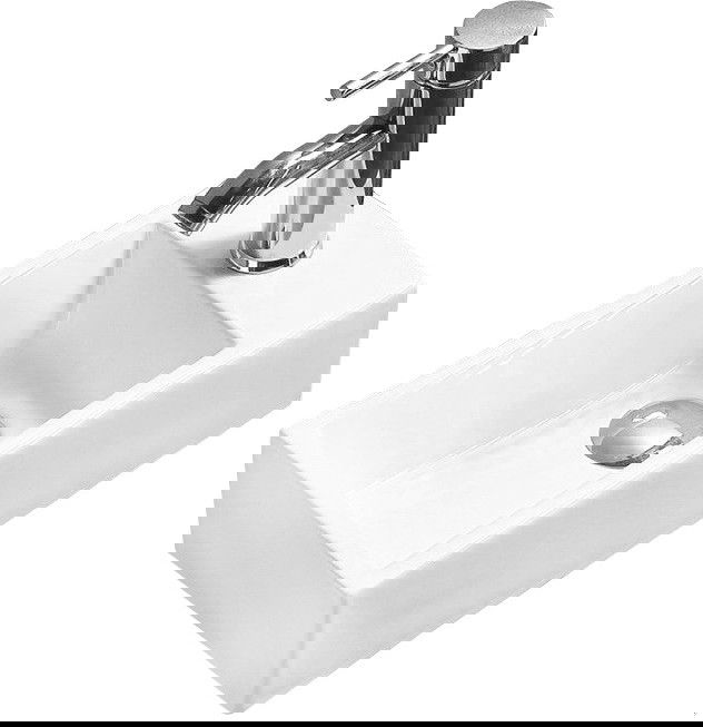 Umyvadlo má otvor, ve kterém lze namontovat baterii. Umožňuje to ušetřit cenný prostor v koupelně a zvýraznit její estetiku. Toto řešení také usnadňuje udržování čistoty kolem umyvadla.