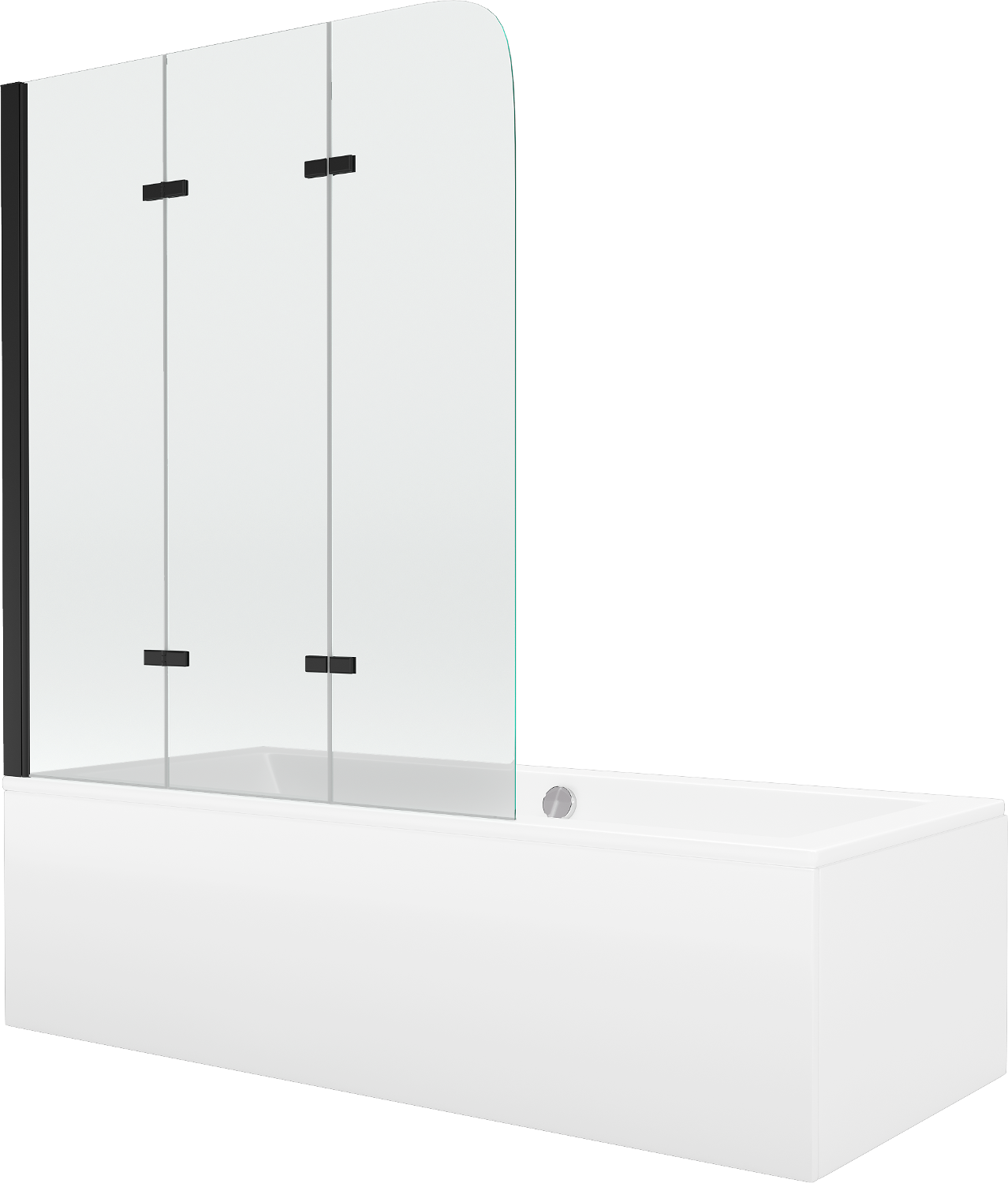 Paravan vyrobený ze tří křídel s možností složení. Takové řešení umožňuje ušetřit více místa v koupelně a umožňuje volné využití zbývajícího prostoru, když nepoužíváme koupací zónu.