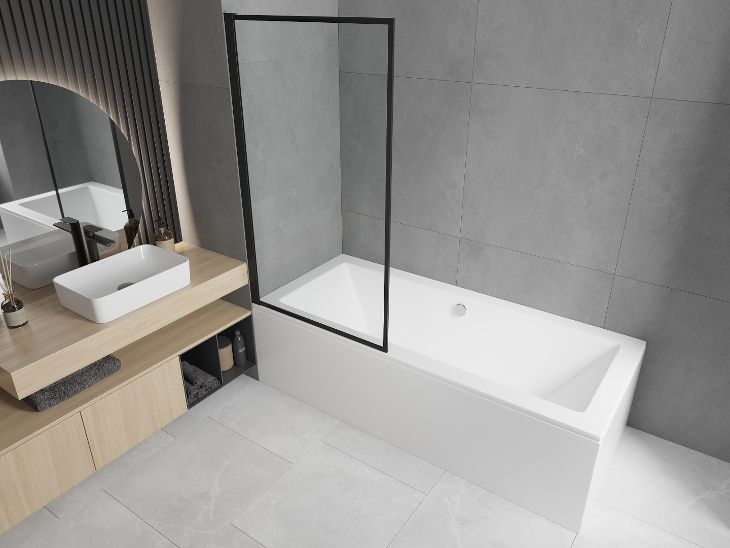 Paraván má jedno pohyblivé křídlo s možností složení. Takové řešení umožňuje ušetřit více místa v koupelně a umožňuje volné využívání zbývajícího prostoru, když nevyužíváme koupací zónu.