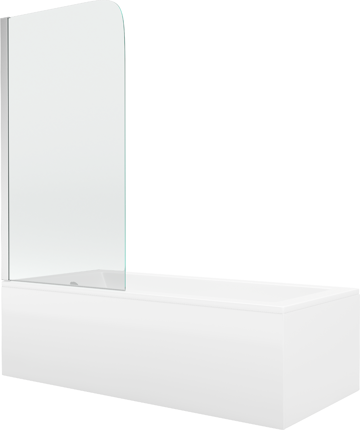 Mexen Cubik obdélníková vana 150 x 70 cm s krytem a paravánem s 1-křídlovým 75 cm, transparentní, chrom - 550315070X9007510100