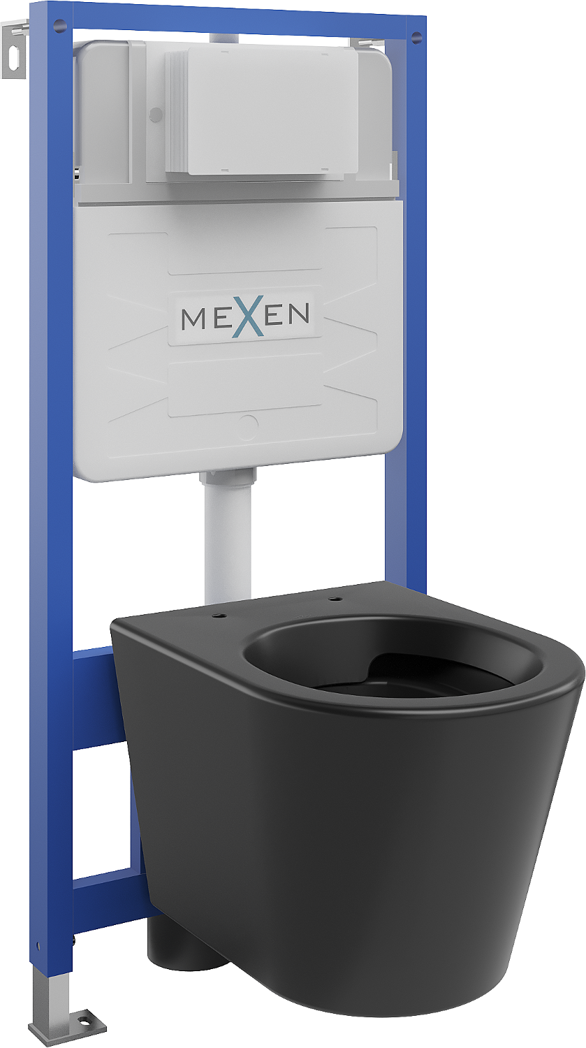 Mexen podomítkový set WC rám Fenix Slim s WC mísou Rico, černý mat - 6103372XX85