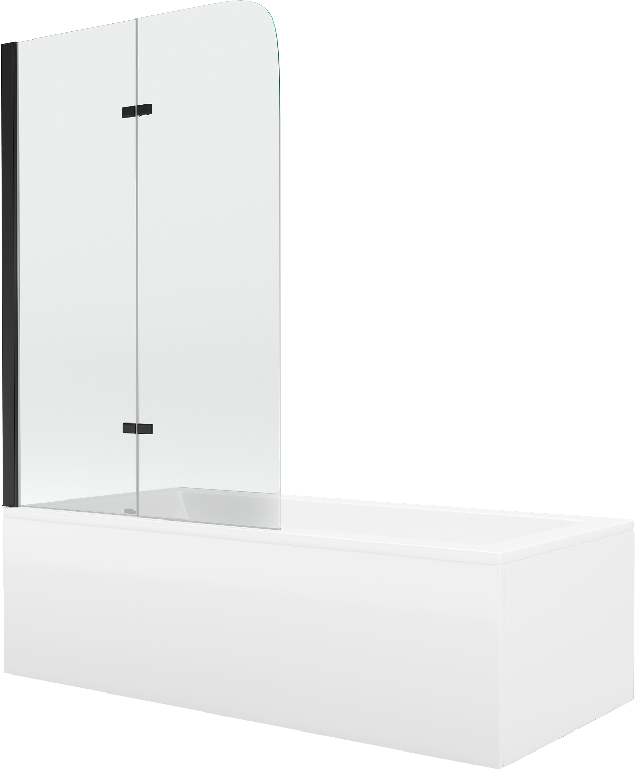 Paravan vyrobený ze dvou křídel s možností složení. Takové řešení umožňuje ušetřit více místa v koupelně a umožňuje volné využití zbývajícího prostoru, když nepoužíváme koupací zónu.