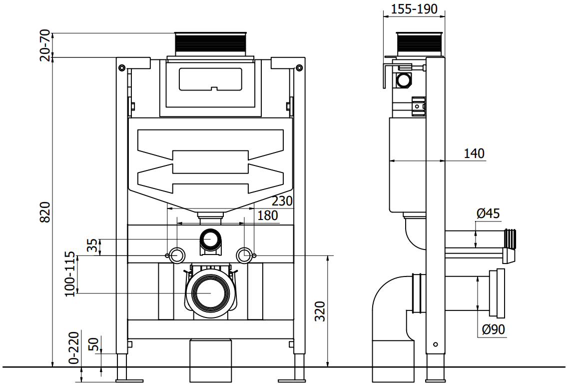 Možnost nastavení výšky rámu umožňuje lepší přizpůsobení různým technickým podmínkám v koupelně. Flexibilní rozsah regulace zajišťuje pohodlnou montáž a dosažení optimální výšky rámu.