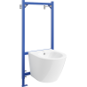 Využití podomítkového rámu k montáži keramiky umožňuje její zavěšení. Tímto způsobem můžeme dosáhnout nejen moderního vzhledu koupelny, ale také zvětšení prostoru a snadnějšího udržování čistoty.