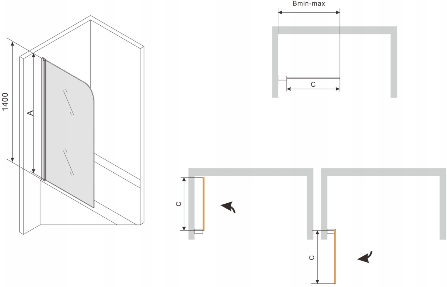 Díky použití univerzálního montážního systému může být paraván namontován na pravé nebo levé straně, podle potřeby. Tímto způsobem můžete snadno navrhnout sprchu přizpůsobenou prostoru koupelny.