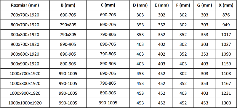 Sprchové kouty, dveře a stěny jsou standardně přizpůsobeny pro montáž na sprchové vaničky určitých rozměrů. Právě tyto rozměry jsou uvedeny v názvu nebo popisu výrobku. Je však třeba mít na paměti, že skutečné rozměry prvků se mohou mírně lišit od nominálních hodnot. V případě plánované instalace přímo na podlahu se doporučuje pečlivě zkontrolovat vnější rozměry a uspořádání prvků podle technického výkresu.