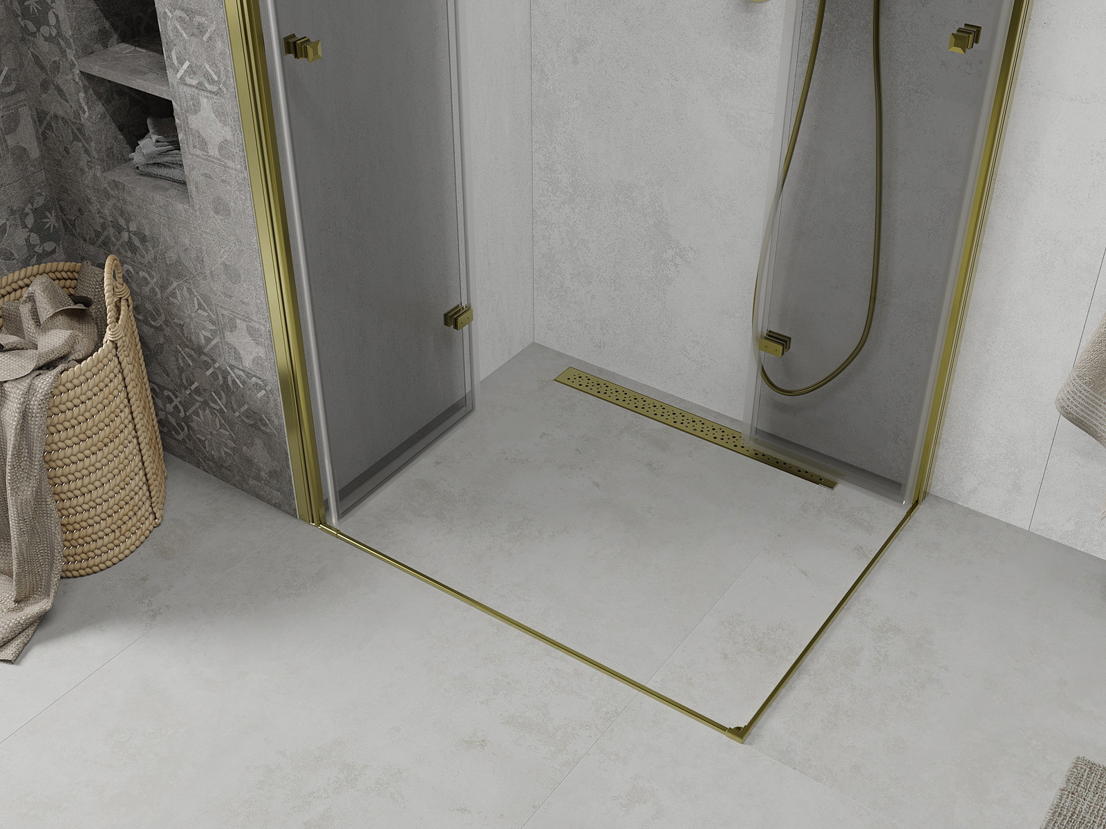 Mexen Lima Duo je moderní sprchový kout o rozměrech 90x80 cm, který spojuje funkčnost s elegancí. Se zlatou povrchovou úpravou a transparentním, tvrzeným sklem o tloušťce 6 mm dodává luxusní vzhled každé koupelně. Univerzální montáž a skládací dveře usnadňují každodenní použití, a povlak usnadňující čištění, možnost regulace šířky a vyrovnání nerovností stěn zajišťují komfort a flexibilitu instalace. Ideální pro montáž jak na vaničku, tak přímo na dlaždice. Hliníkový profil, kovová rukojeť a komplet těsnění dbají o těsnost a pohodlí při používání.