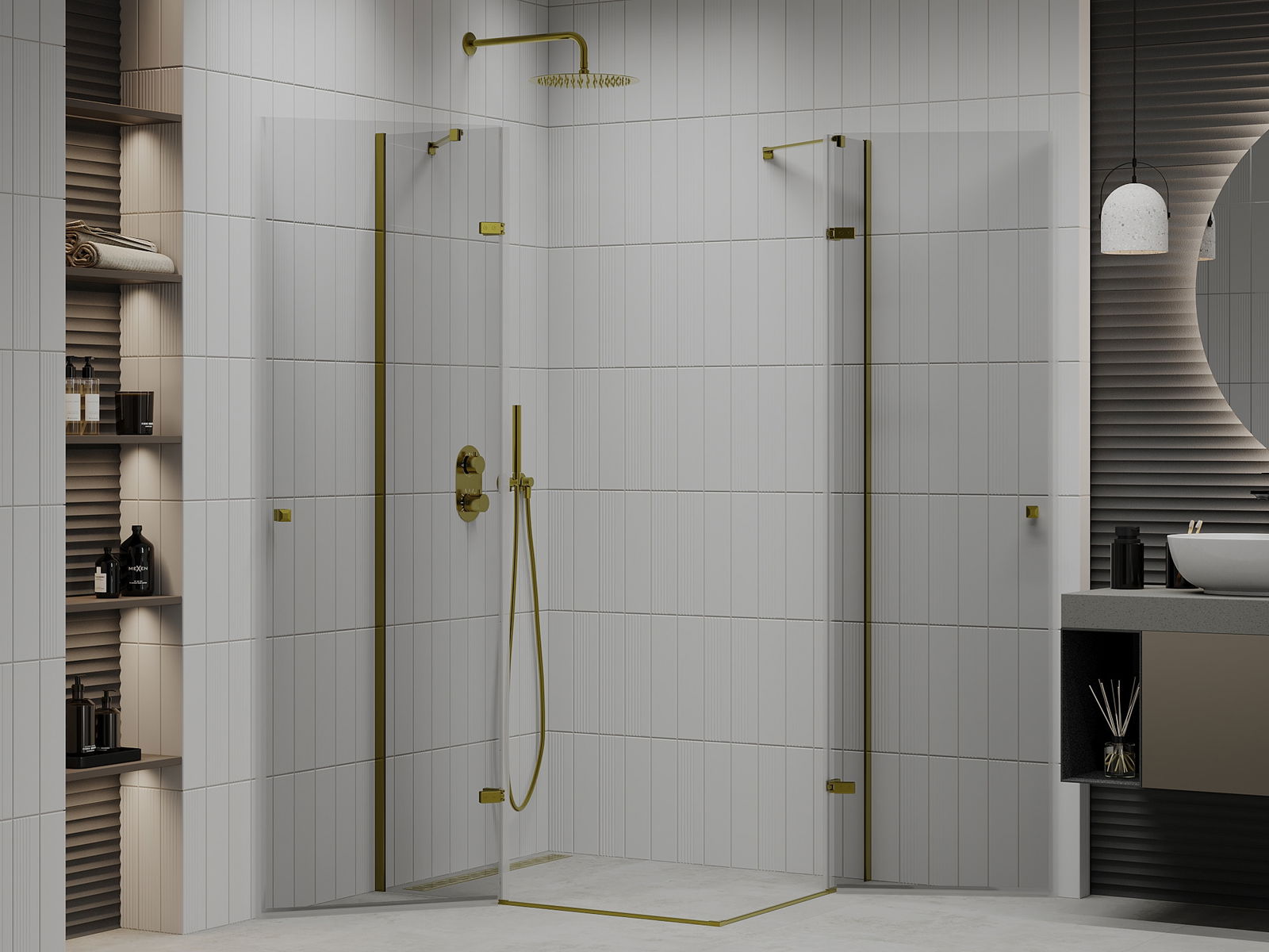 Mexen Roma Duo sprchová kabina s otočnými dveřmi 80 x 70 cm, transparentní, zlatá - 854-080-070-50-00-02