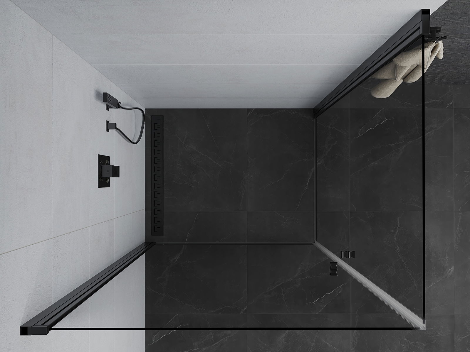 Praktická a pohodlná rukojeť je vyrobena z odolného a trvanlivého kovu. Moderní tvar ve spojení s povrchovou úpravou, která ladí s barvou profilů, dodává celku moderní a stylový vzhled, zdůrazňující estetiku každé koupelny.