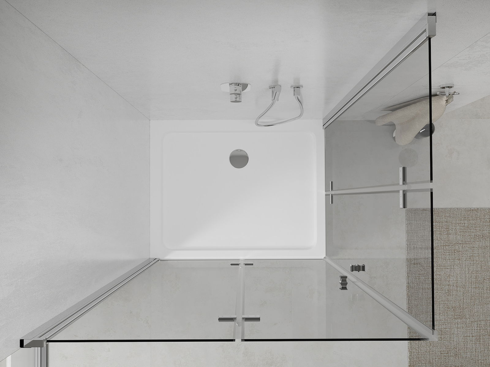 Možnost skládání dveří, jak dovnitř, tak ven, umožňuje získat více prostoru při nepoužívání sprchy. Je to ideální řešení pro menší koupelny, maximálně využívající dostupný prostor.
