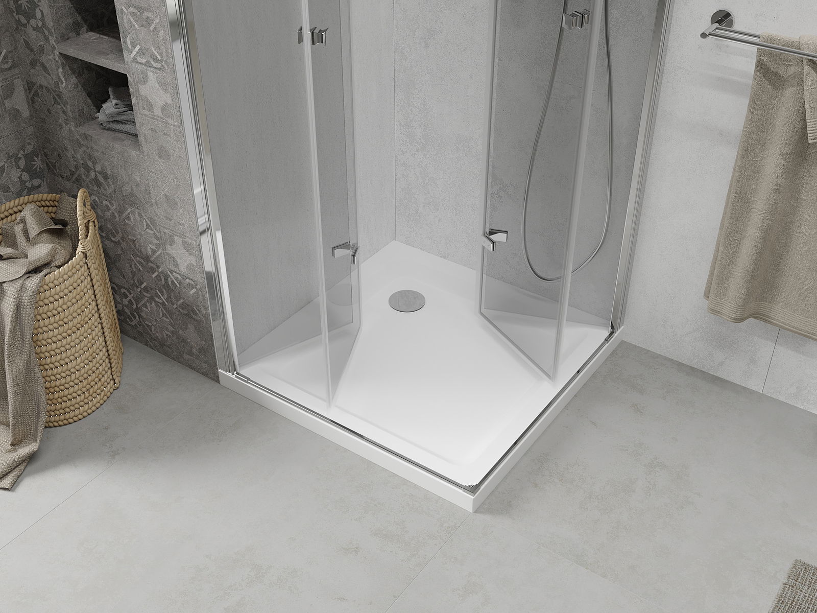 Možnost skládání dveří, jak dovnitř, tak ven, umožňuje získat více prostoru při nepoužívání sprchy. Je to ideální řešení pro menší koupelny, maximálně využívající dostupný prostor.