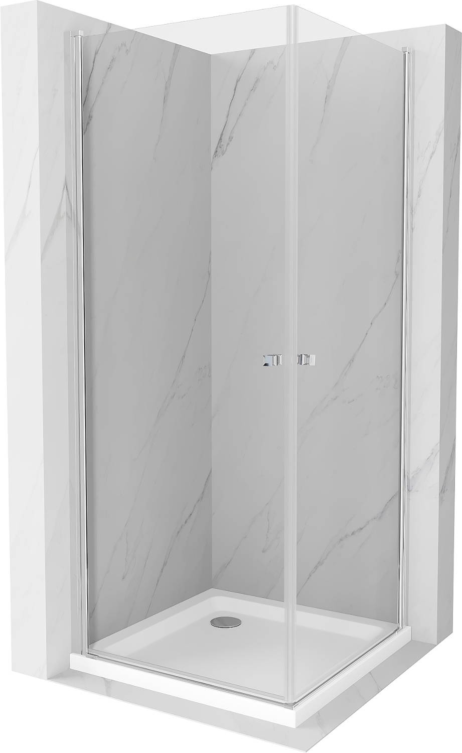 Mexen Pretoria Duo sprchový kout s výklopnými dveřmi 90 x 90 cm, transparentní, chrom + sprchová vanička Flat
