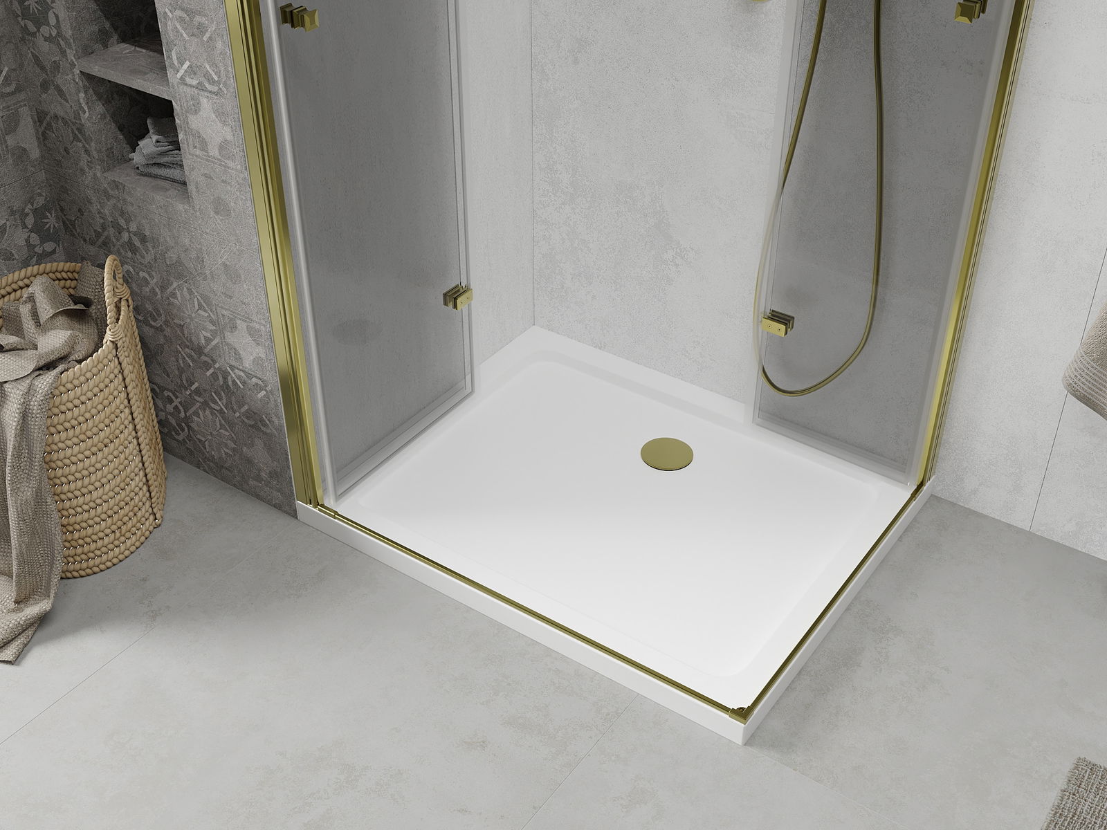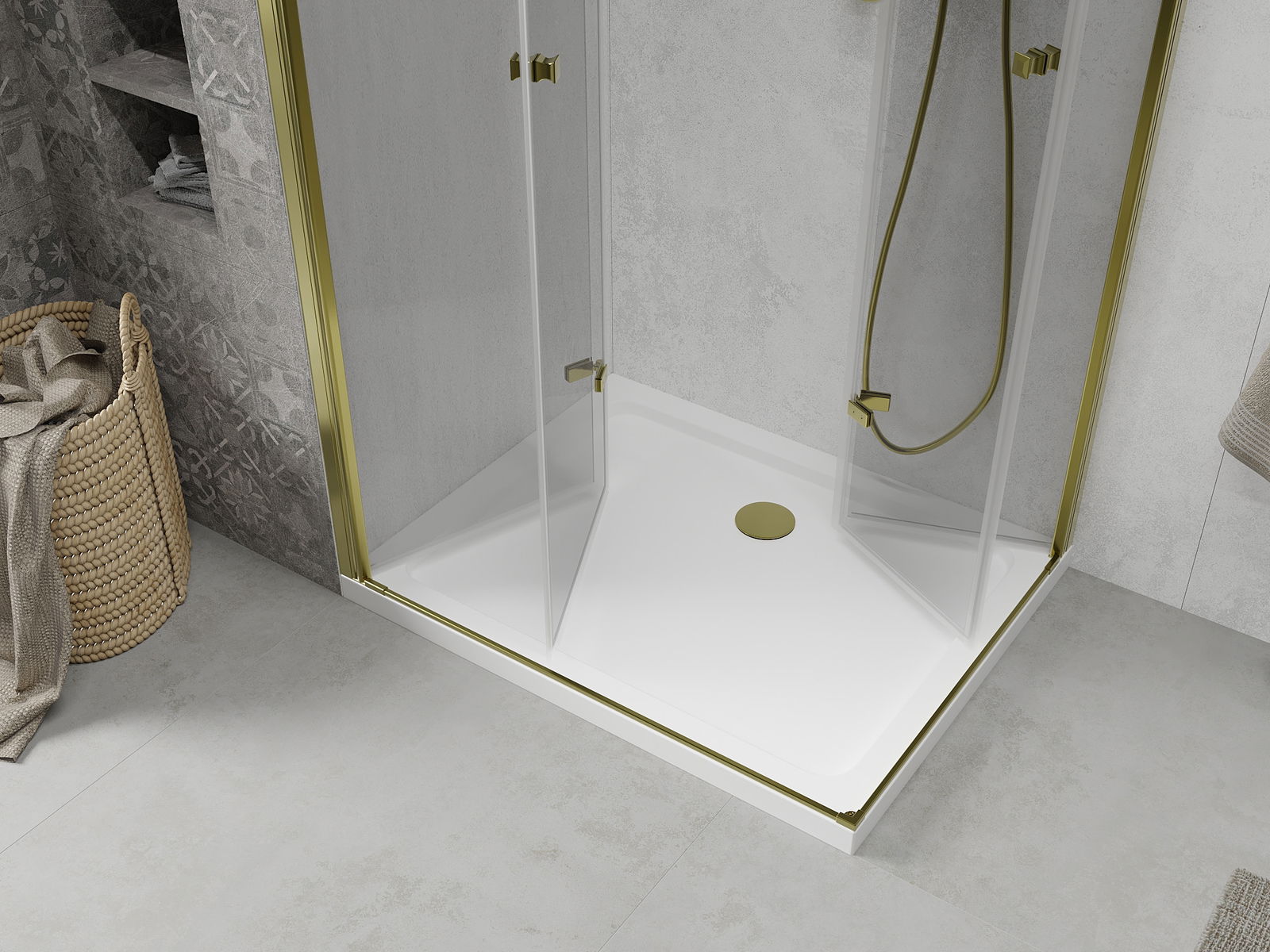 Mexen Lima Duo skládací sprchový kout 90 x 80 cm, transparentní, zlatá + vanička Flat - 856-090-080-50-02-4010G