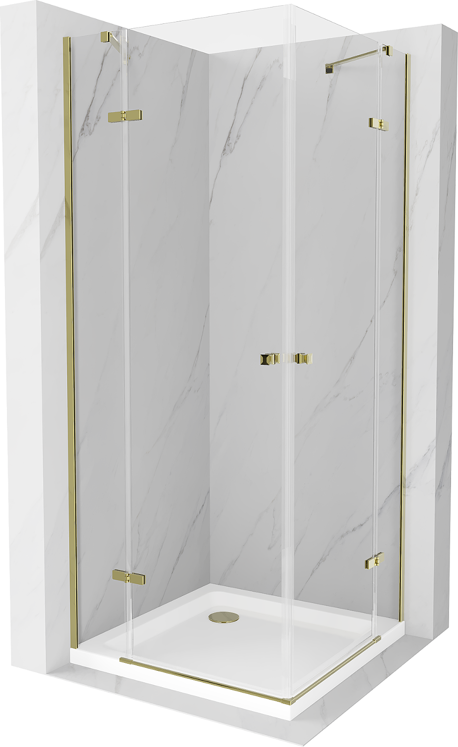 Mexen Roma Duo sprchový kout 80 x 80 cm, transparentní, zlatý + vanička Flat - 854-080-080-50-02-4010G