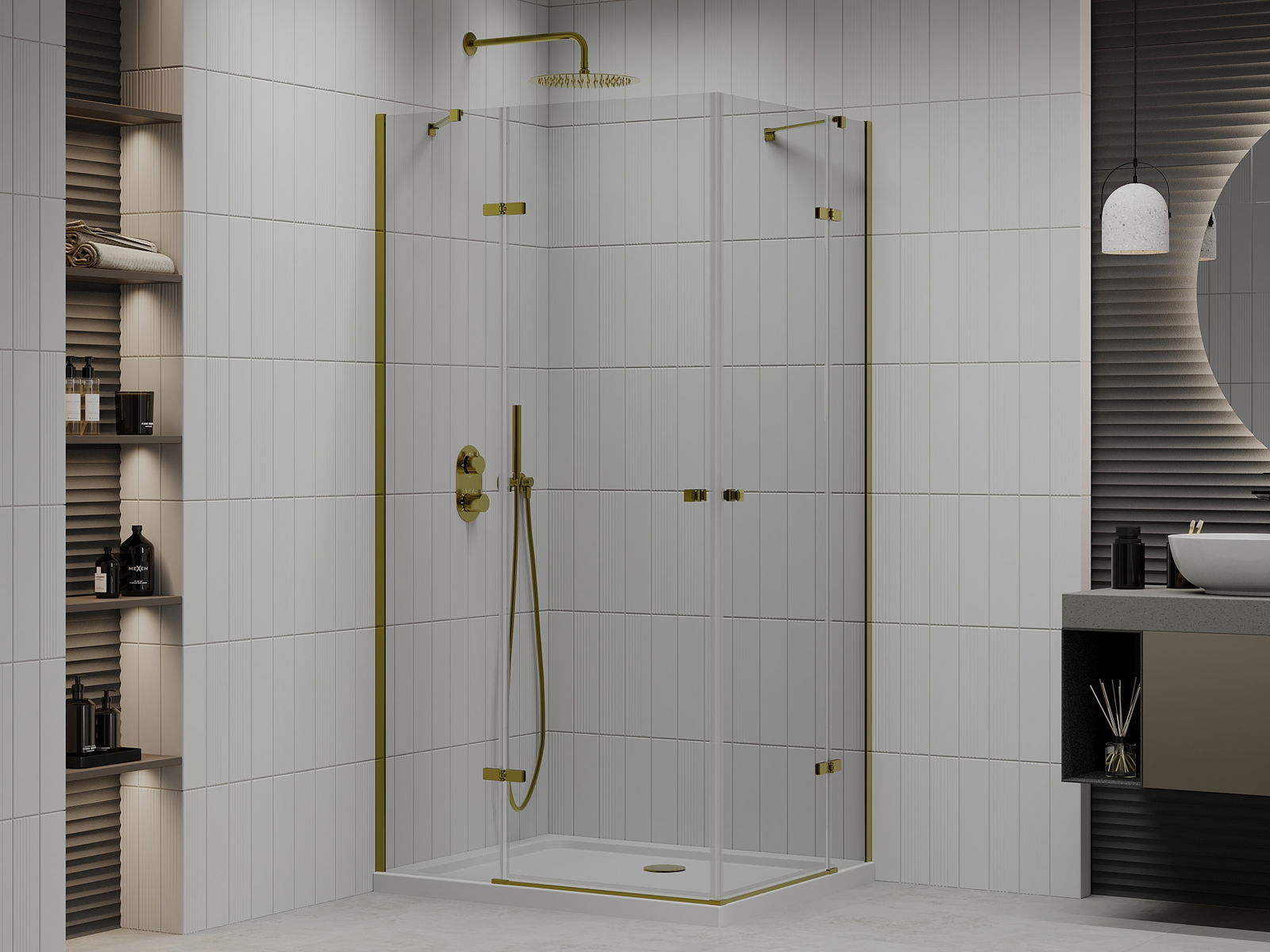 Mexen Roma Duo sprchový kout otevírací 90 x 80 cm, transparentní, zlatý + vanička Flat - 854-090-080-50-02-4010G