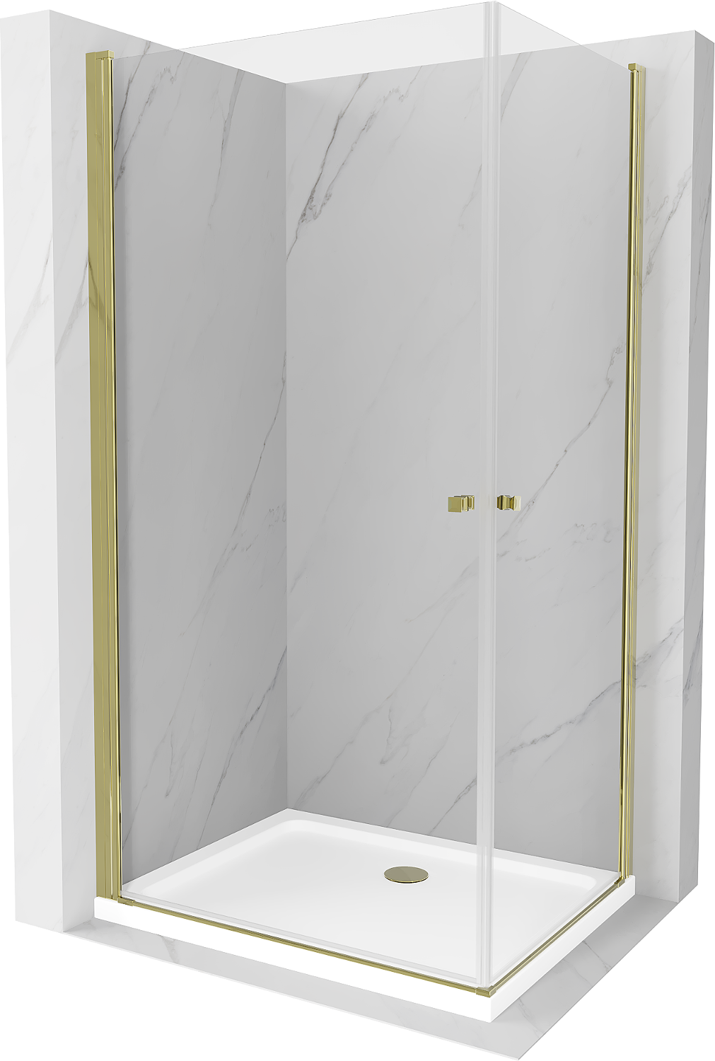 Mexen Pretoria Duo sprchová kabina otočná 80 x 70 cm, transparentní, zlatá + sprchová vanička Flat - 852-080-070-50-02-4010G