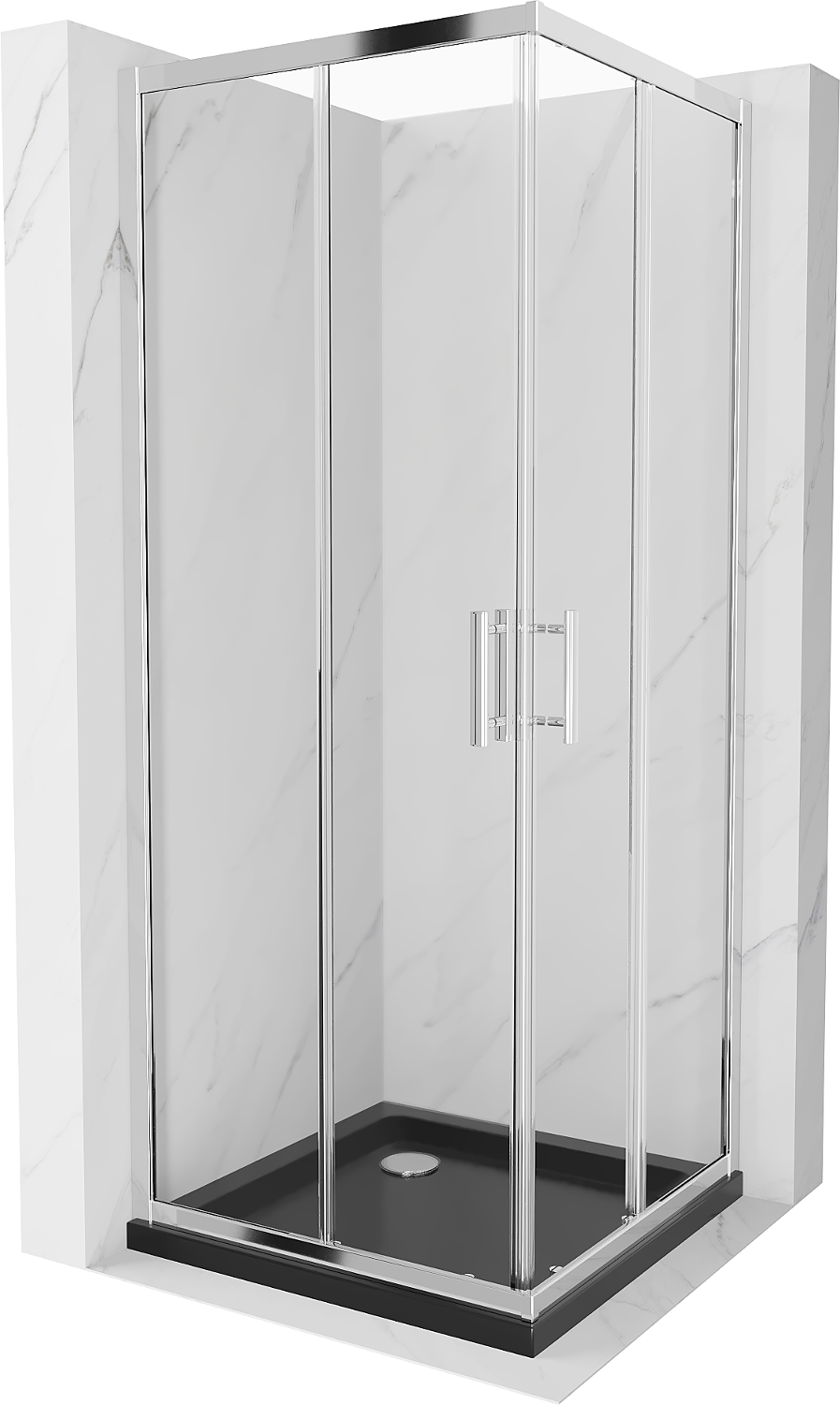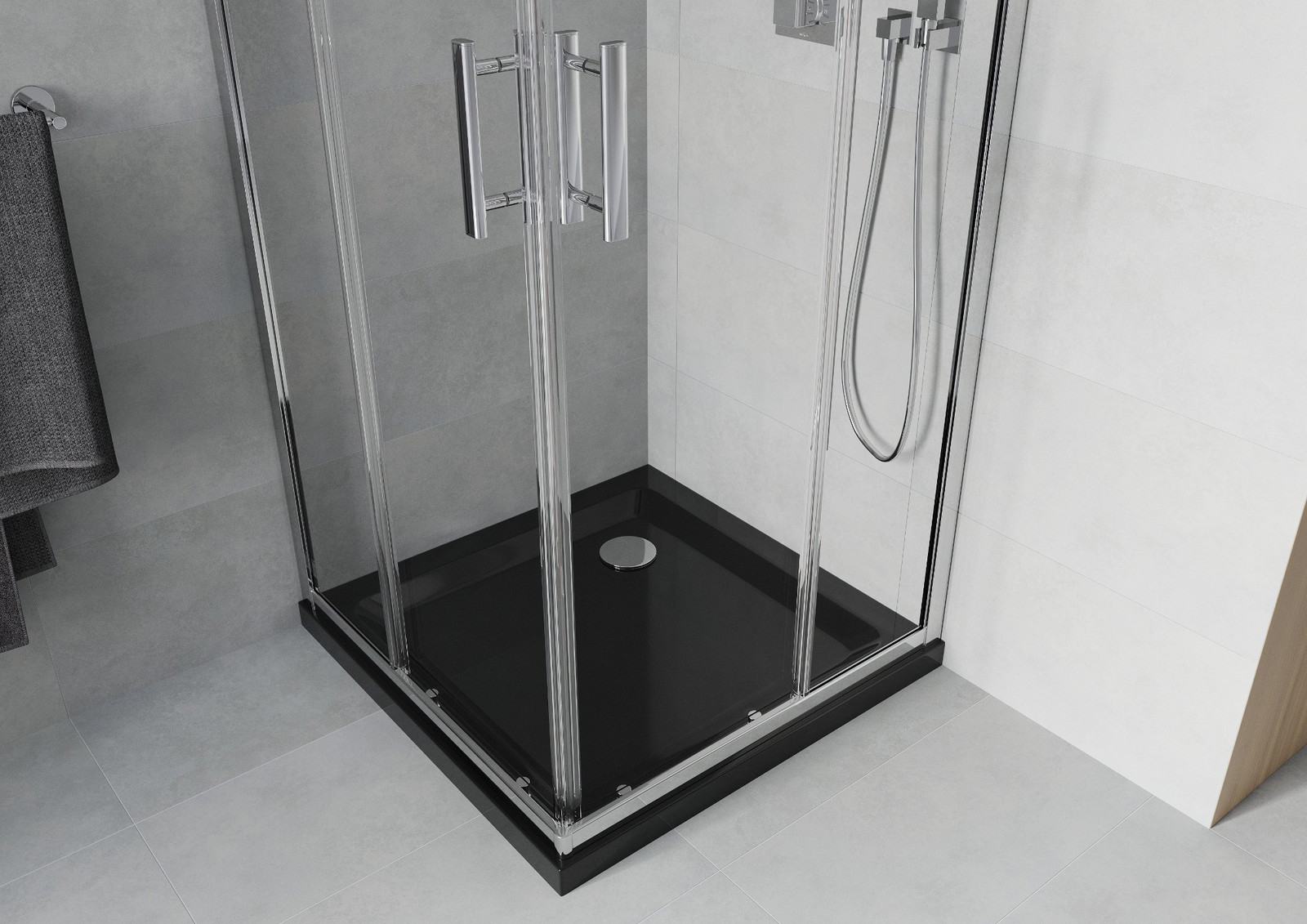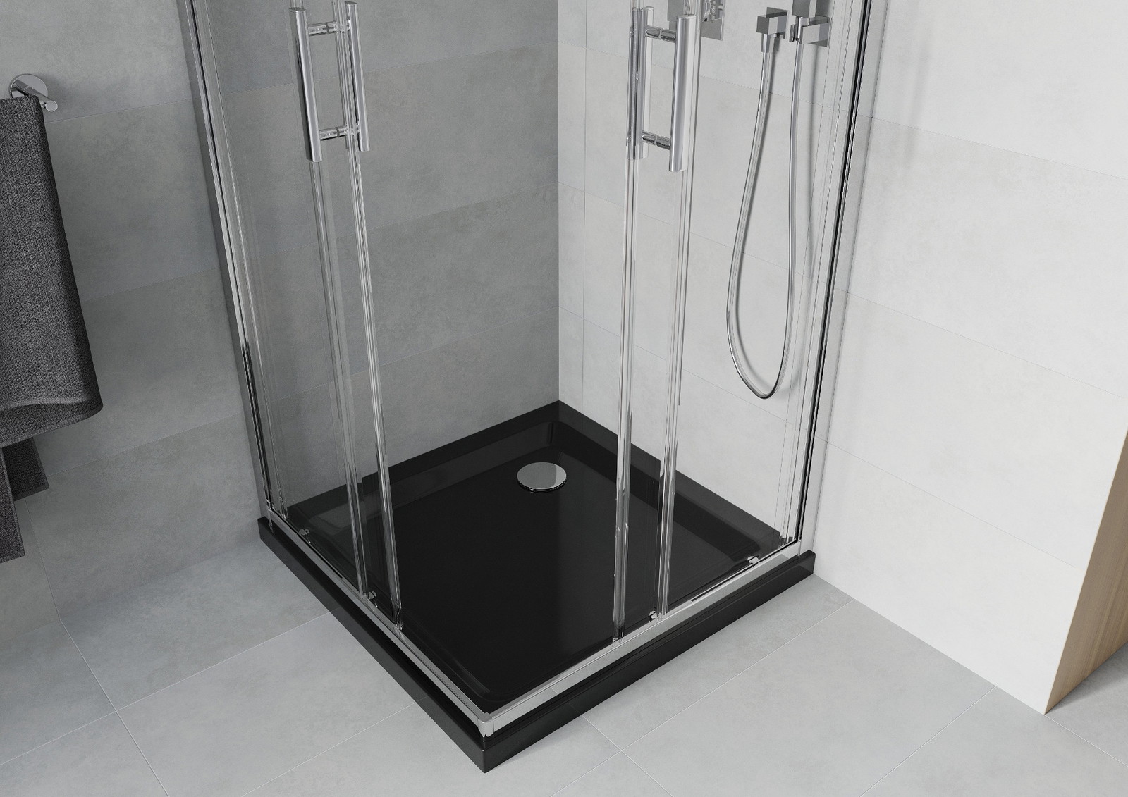 Mexen Rio čtvercová sprchová kabina 80 x 80 cm, transparentní, chrom + sprchová vanička Flat, černý
