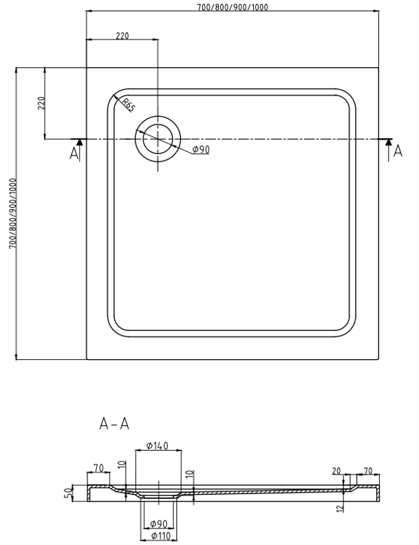 Sprchové kouty, dveře a stěny jsou standardně přizpůsobeny pro montáž na sprchové vaničky určitých rozměrů. Právě tyto rozměry jsou uvedeny v názvu nebo popisu výrobku. Je však třeba mít na paměti, že skutečné rozměry prvků se mohou mírně lišit od nominálních hodnot. V případě plánované instalace přímo na podlahu se doporučuje pečlivě zkontrolovat vnější rozměry a uspořádání prvků podle technického výkresu.