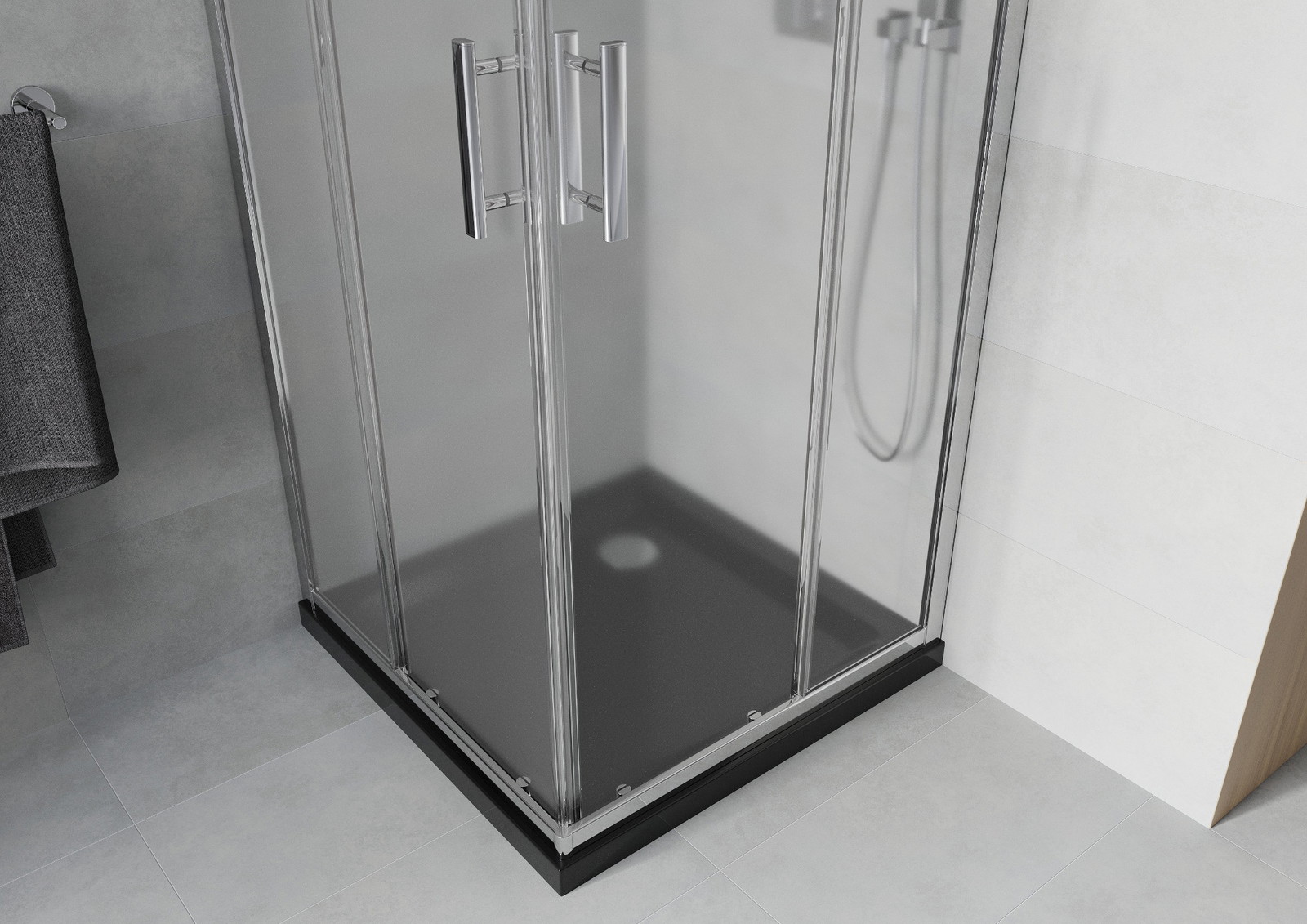 Praktická a pohodlná rukojeť je vyrobena z odolného a trvanlivého kovu. Moderní tvar ve spojení s povrchovou úpravou, která ladí s barvou profilů, dodává celku moderní a stylový vzhled, zdůrazňující estetiku každé koupelny.