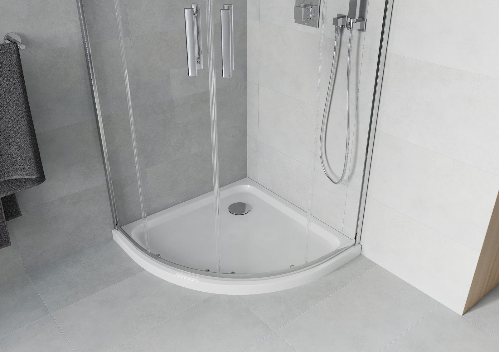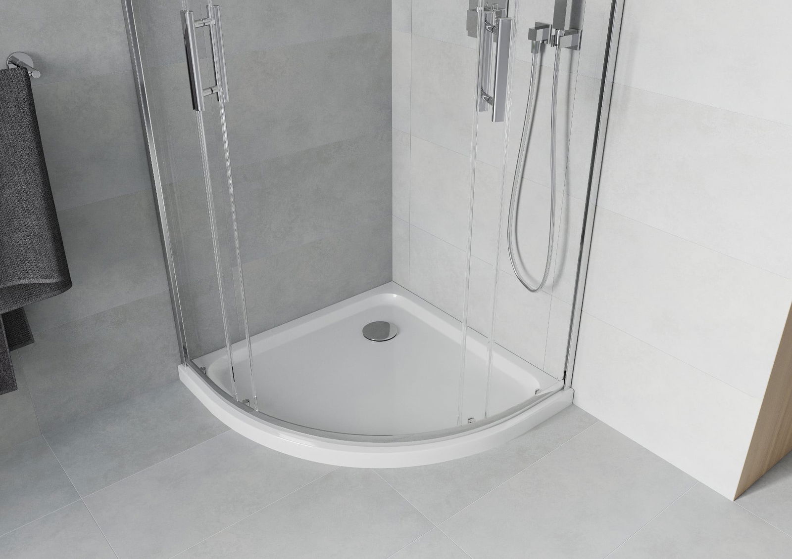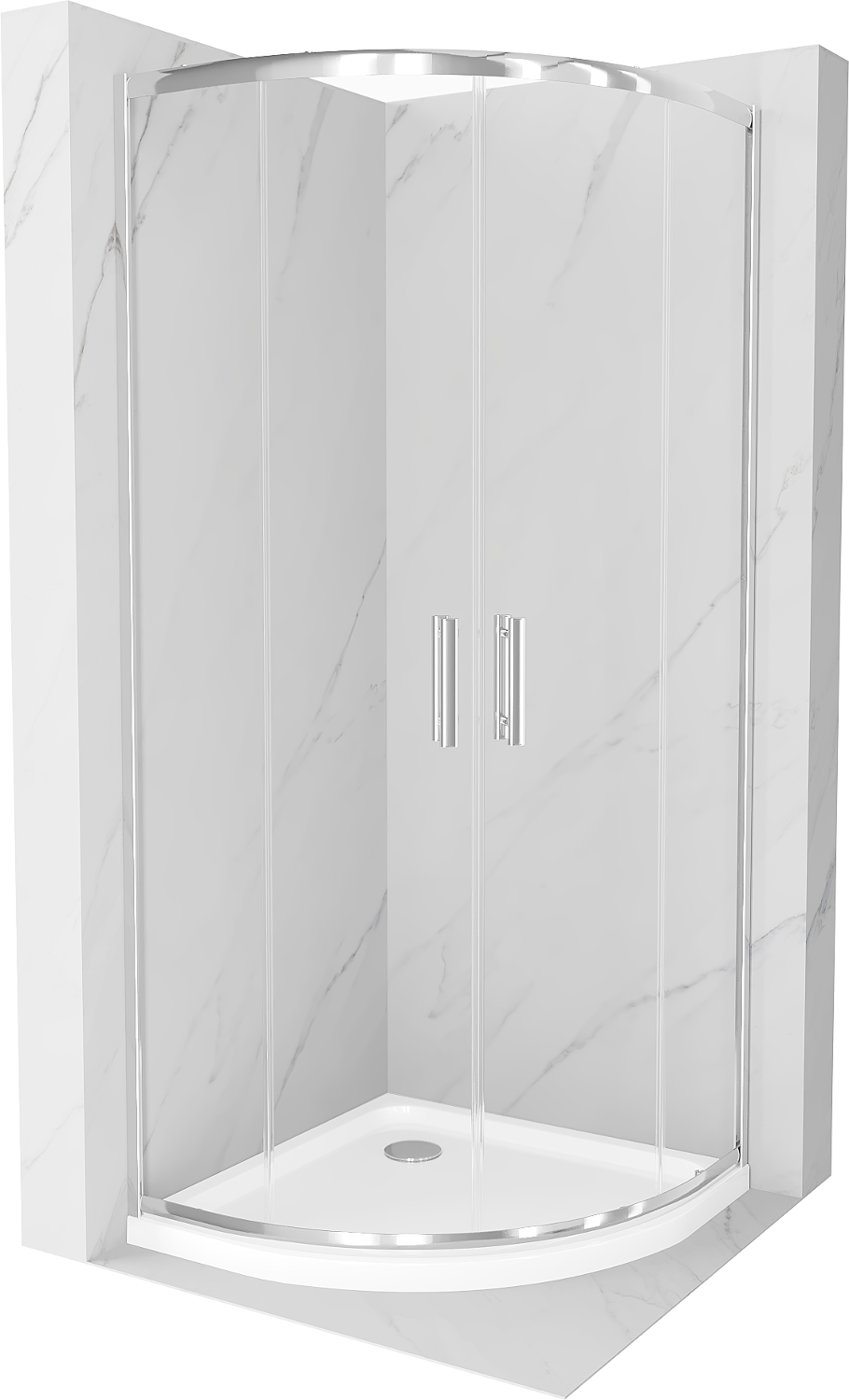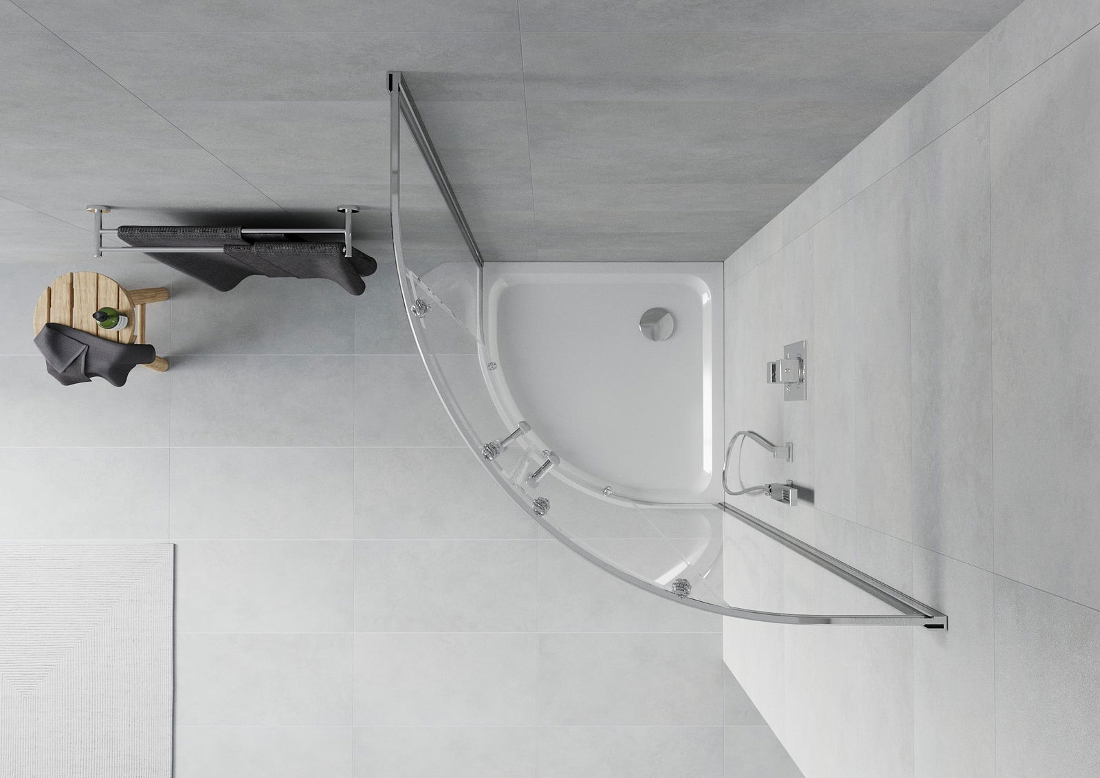 Mexen Rio půlkruhová sprchová kabina 90 x 90 cm, transparentní, chrom + sprchová vanička Flat, bílá - 863-090-090-01-00-4110