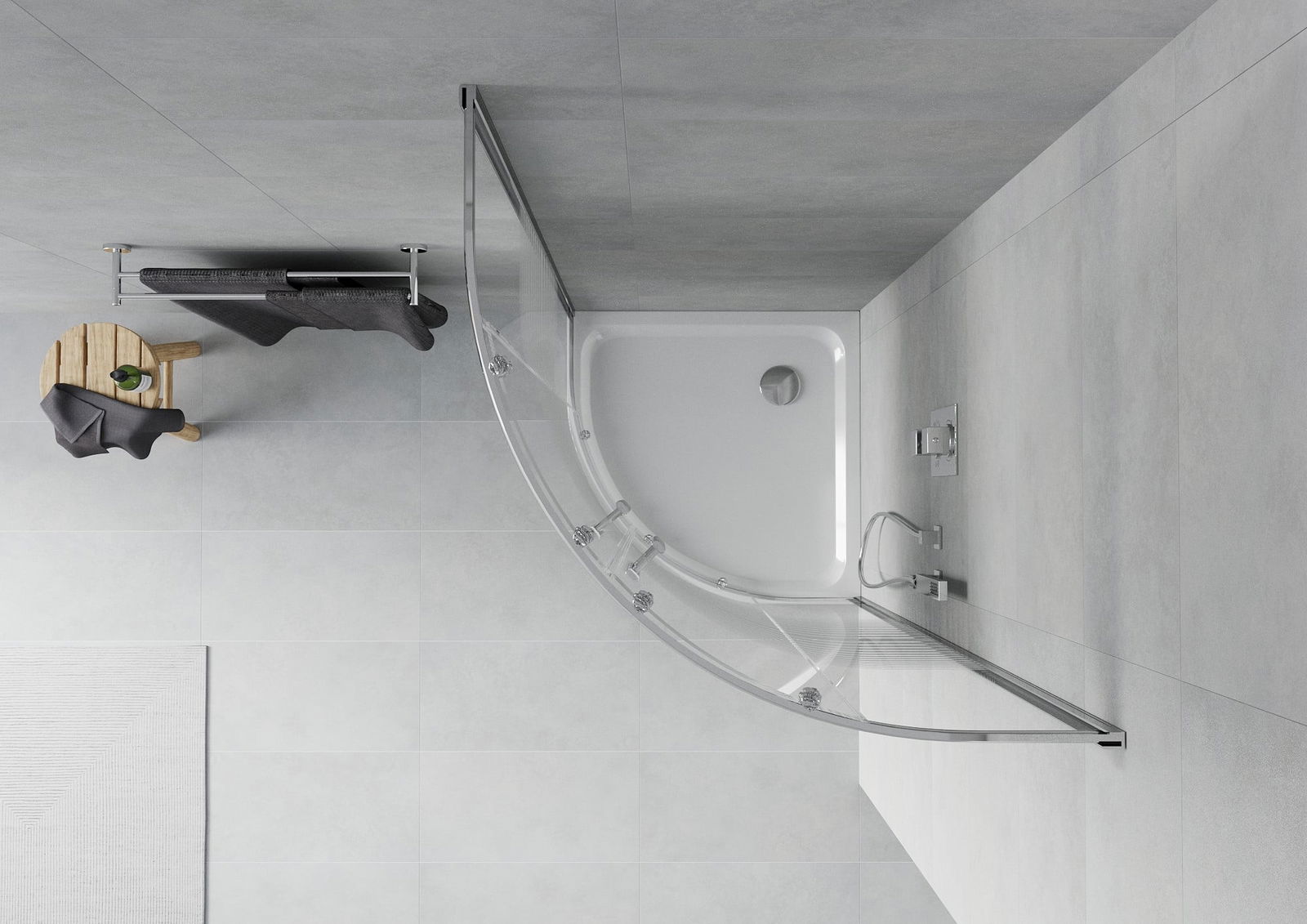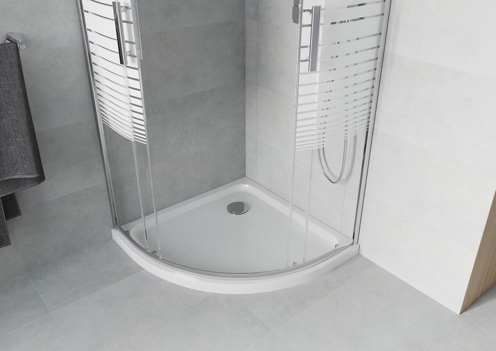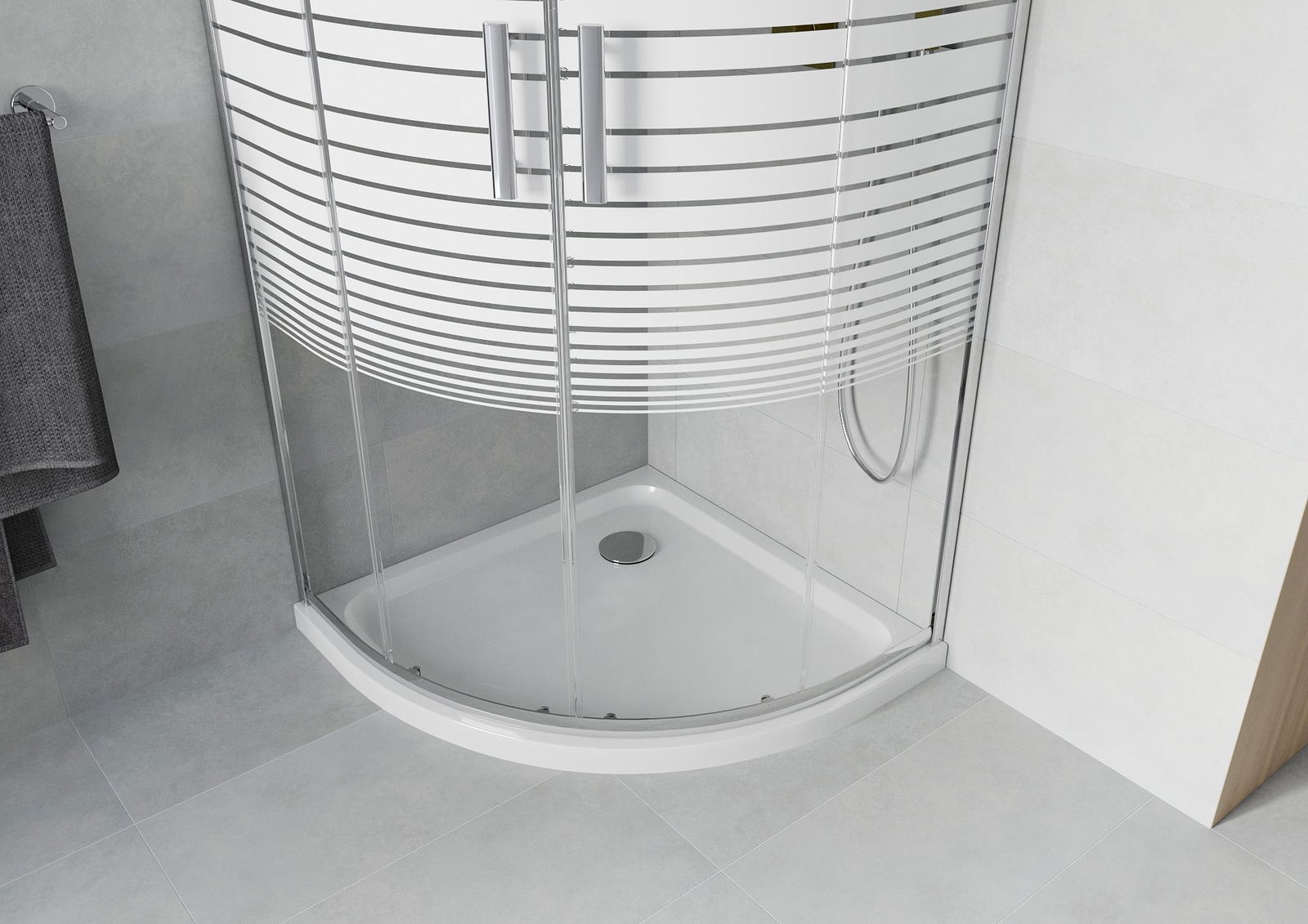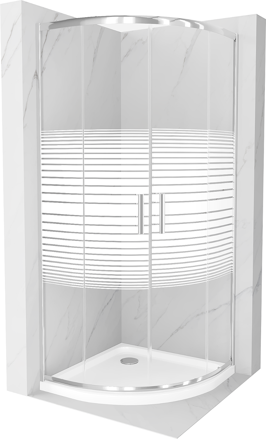 Mexen Rio polokruhový sprchový kout 90 x 90 cm, bílé pruhy, chrom + vanička Flat, bílá - 863-090-090-01-20-4110