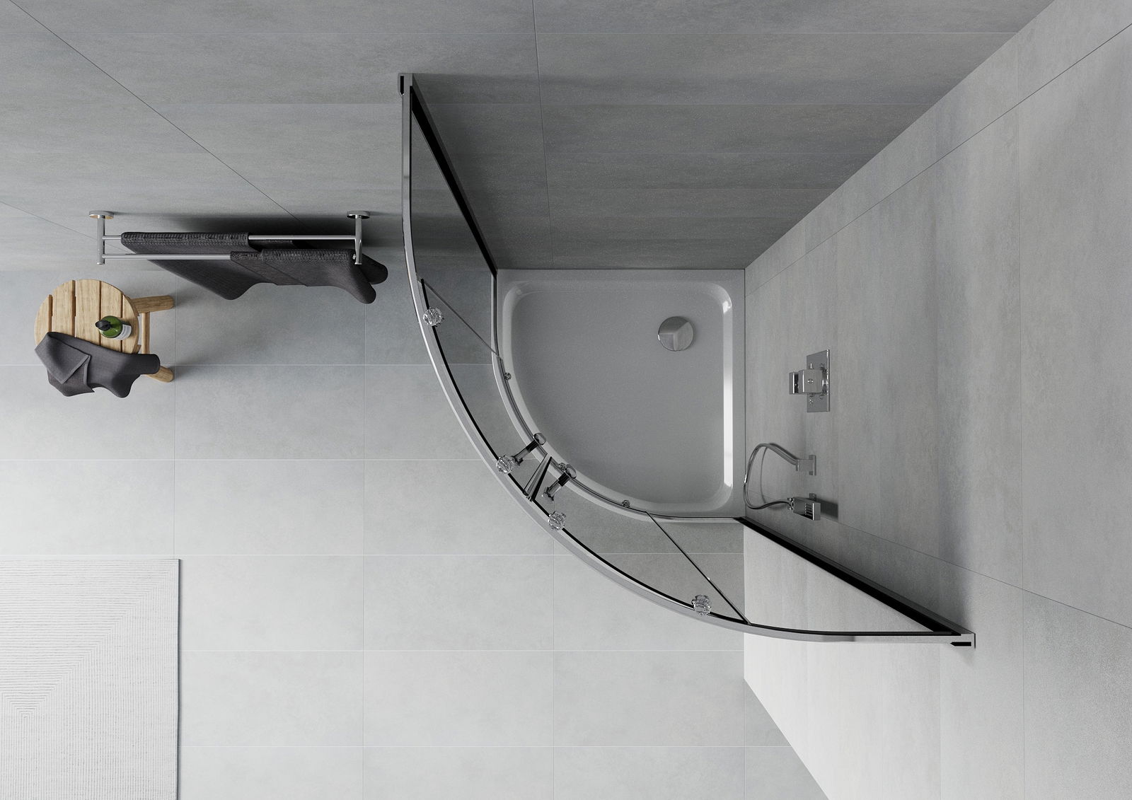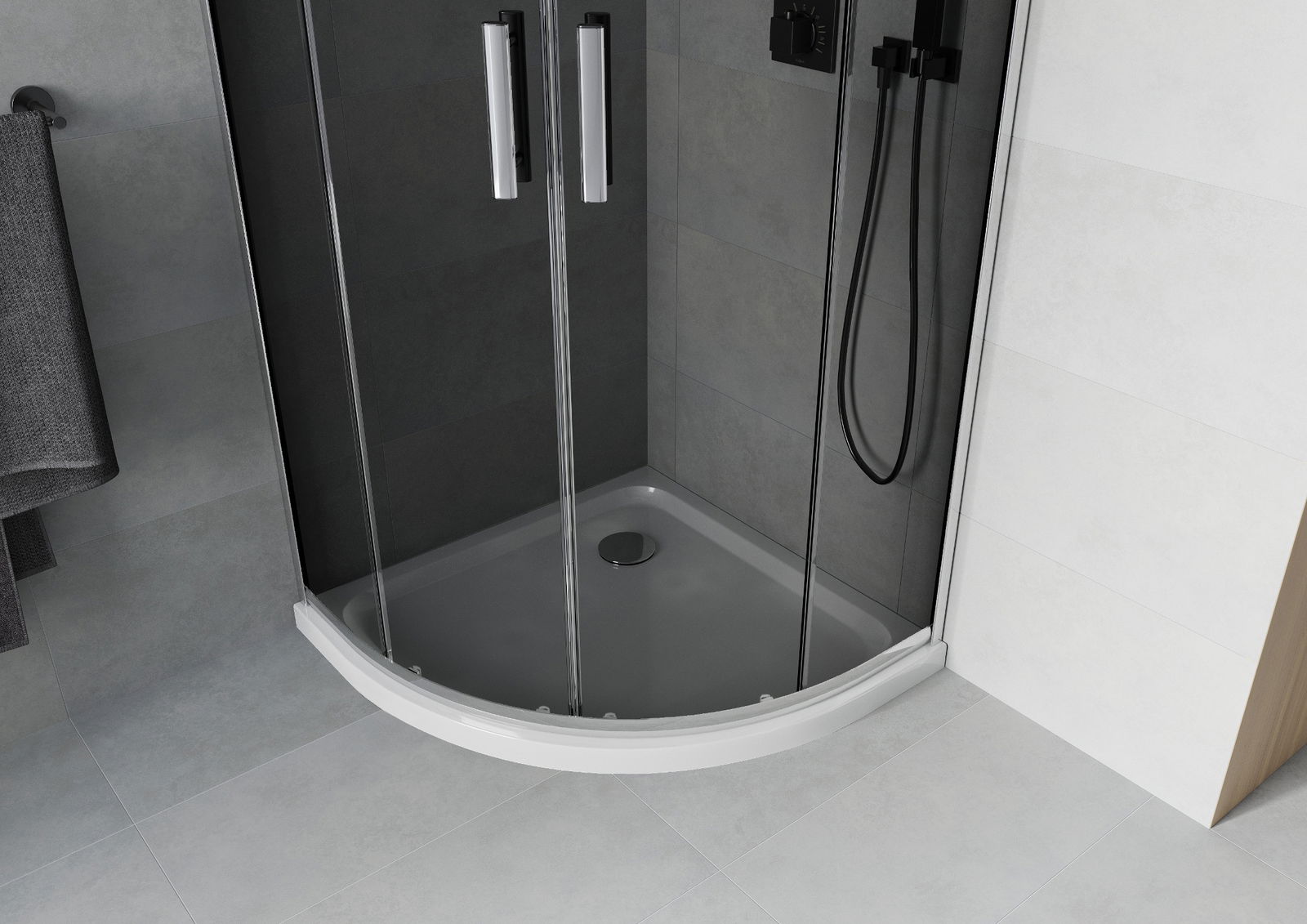 Mexen Rio polokruhová sprchová kabina 90 x 90 cm, grafit, chrom + vanička Flat, bílá - 863-090-090-01-40-4110