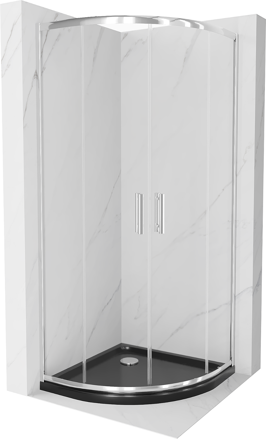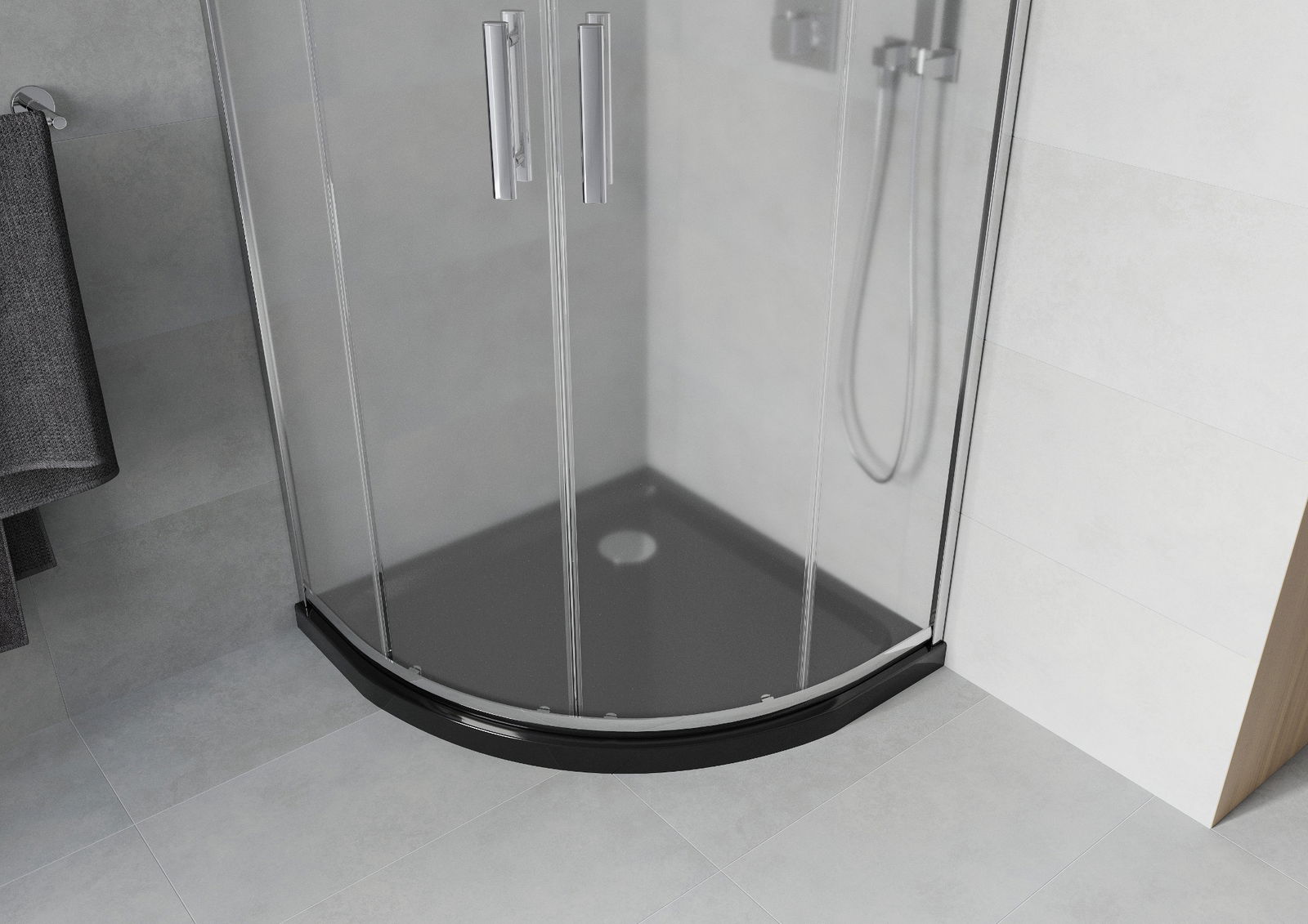 Mexen Rio sprchový kout půlkruhový 80 x 80 cm, transparentní, chrom + sprchová vanička Flat, černá - 863-080-080-01-00-4170