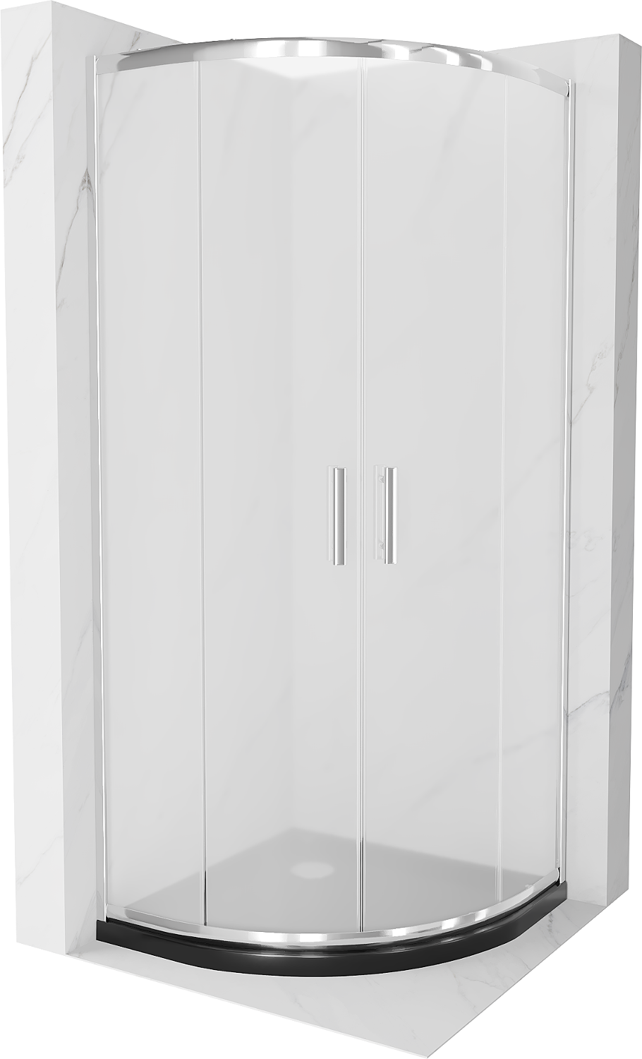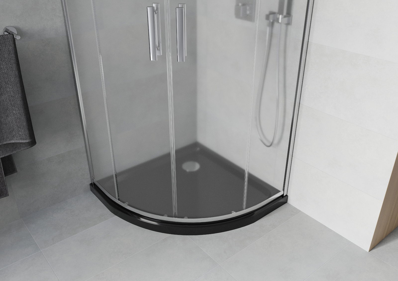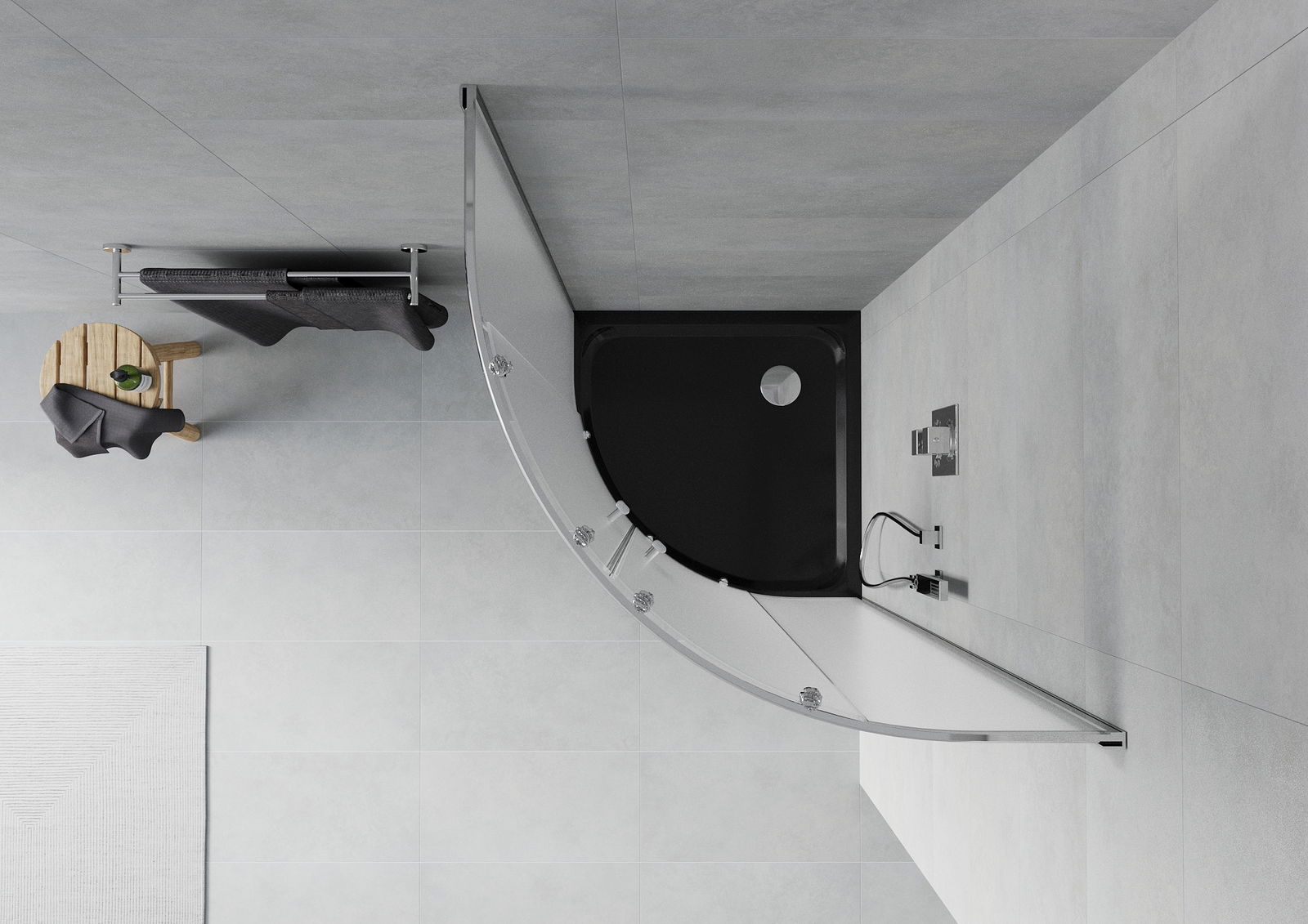 Mexen Rio sprchový kout půlkruhový 80 x 80 cm, mat, chrom + vanička Flat, černý - 863-080-080-01-30-4170