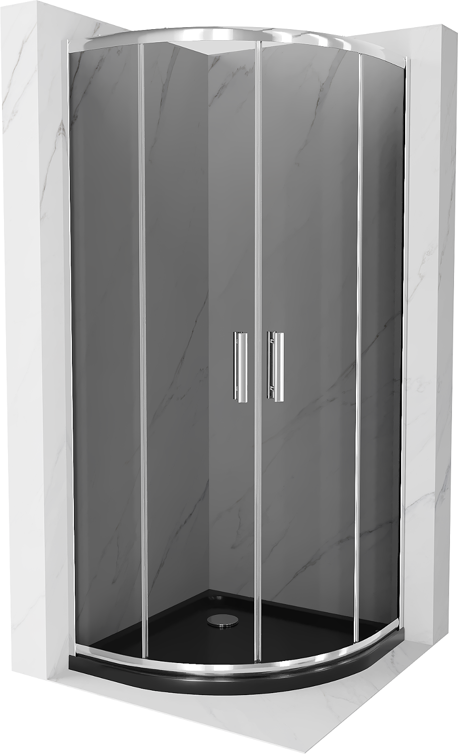 Mexen Rio půlkruhový sprchový kout 80 x 80 cm, grafit, chrom + sprchová vanička Flat, černý - 863-080-080-01-40-4170