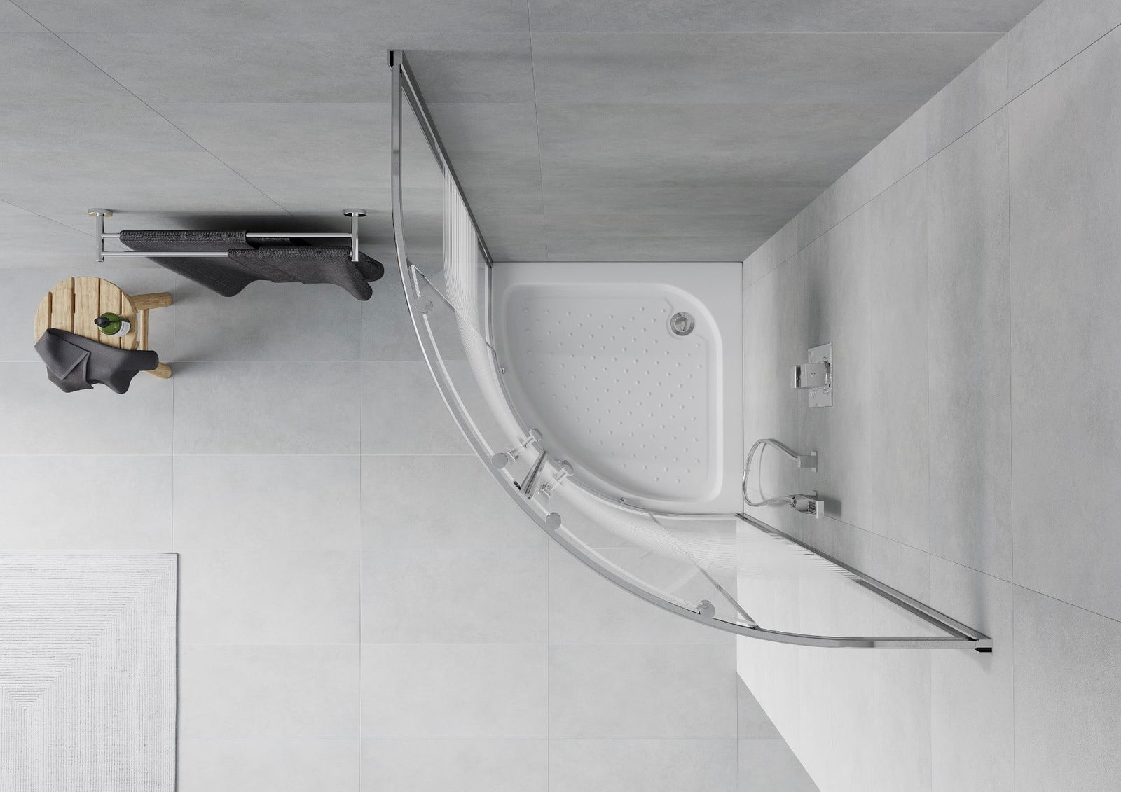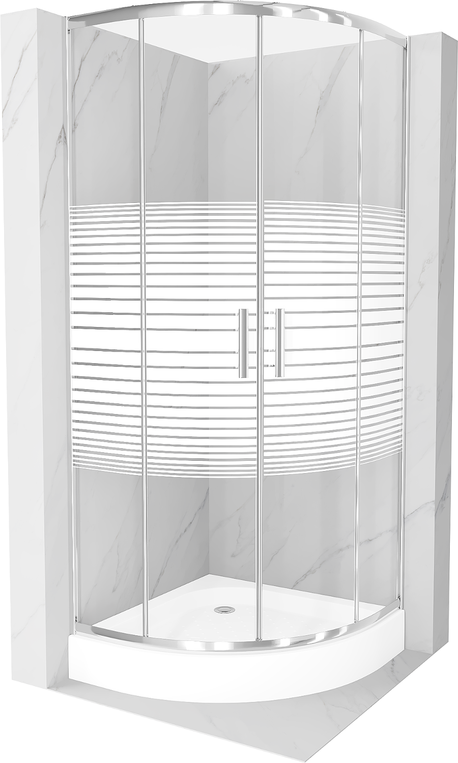 Mexen Rio sprchový kout půlkruhový 90 x 90 cm, bílé pruhy, chrom + sprchová vanička , bílá - 863-090-090-01-20-4710