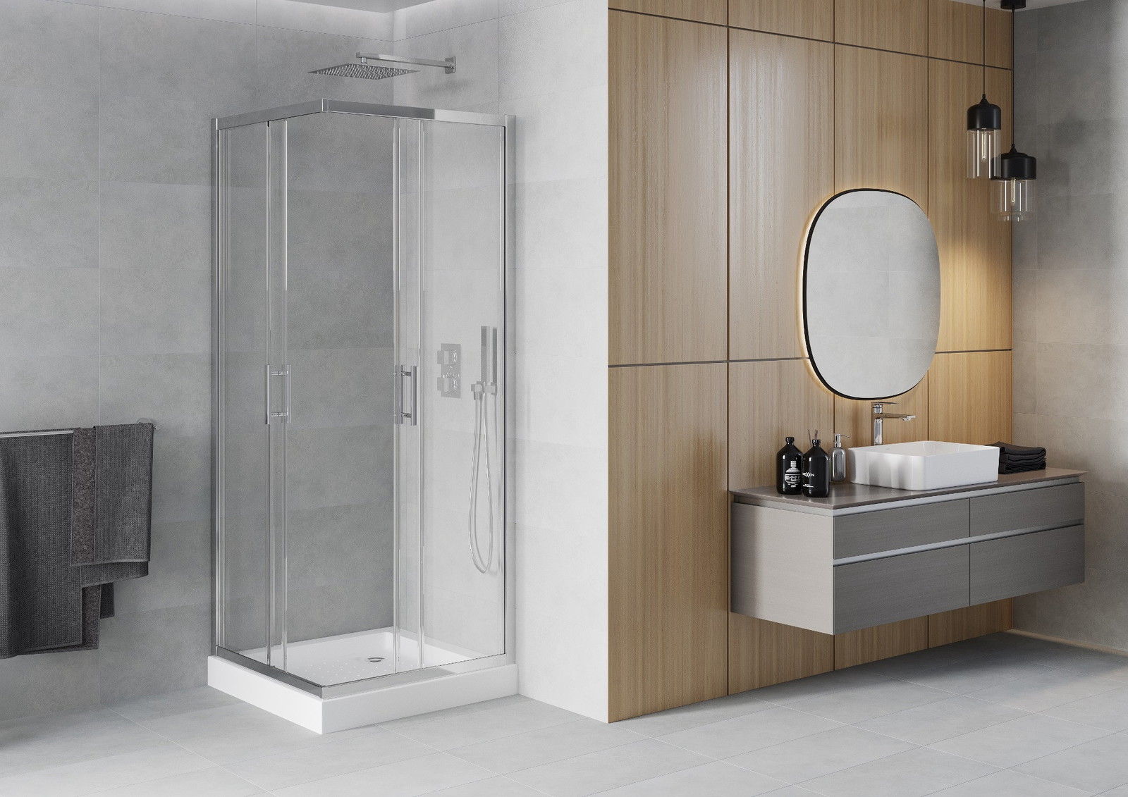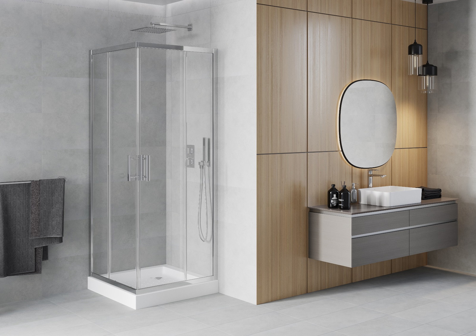 Posuvné dveře se pohybují po speciálních vodítkách a nevyžadují další prostor pro jejich otevření, proto se hodí do menších koupelen. Díky dvojitým válečkům z odolného plastu je jejich pohyb plynulý.