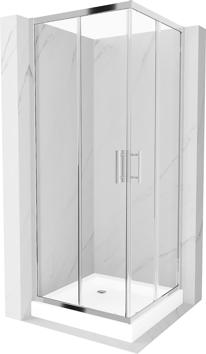 Mexen Rio čtvercová sprchová kabina 80 x 80 cm, transparentní, chrom + sprchová vanička, bílá - 860-080-080-01-00-4510