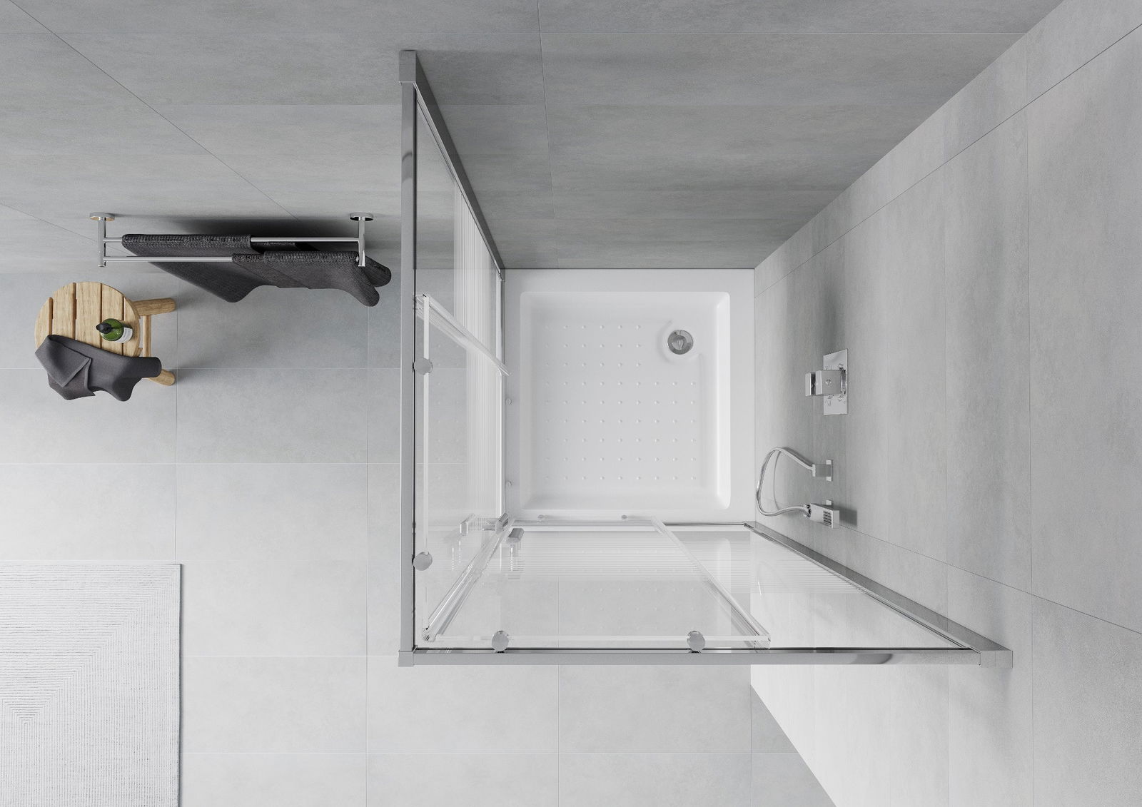 Posuvné dveře se pohybují po speciálních vodítkách a nevyžadují další prostor pro jejich otevření, proto se hodí do menších koupelen. Díky dvojitým válečkům z odolného plastu je jejich pohyb plynulý.