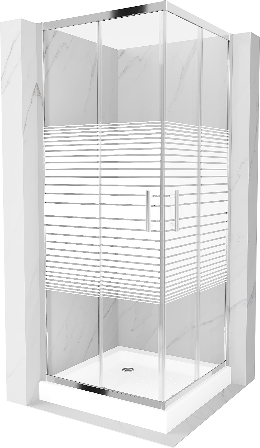 Mexen Rio čtvercová sprchová kabina 80 x 80 cm, bílé pruhy, chrom + sprchová vanička, bílá - 860-080-080-01-20-4510
