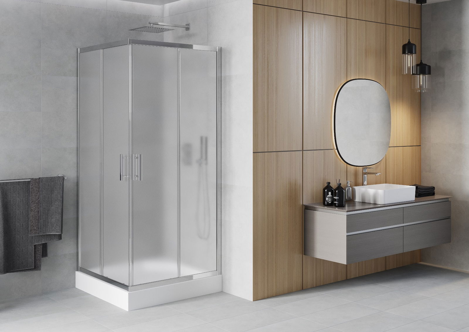 Posuvné dveře se pohybují po speciálních vodítkách a nevyžadují další prostor pro jejich otevření, proto se hodí do menších koupelen. Díky dvojitým válečkům z odolného plastu je jejich pohyb plynulý.