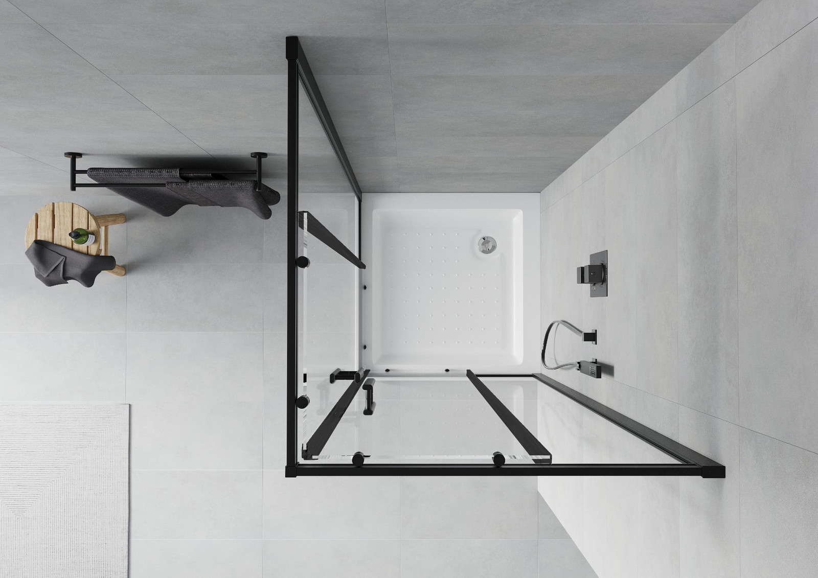 Mexen Rio čtvercová sprchová kabina 80 x 80 cm, transparentní, černá + sprchová vanička, bílá - 860-080-080-70-00-4510