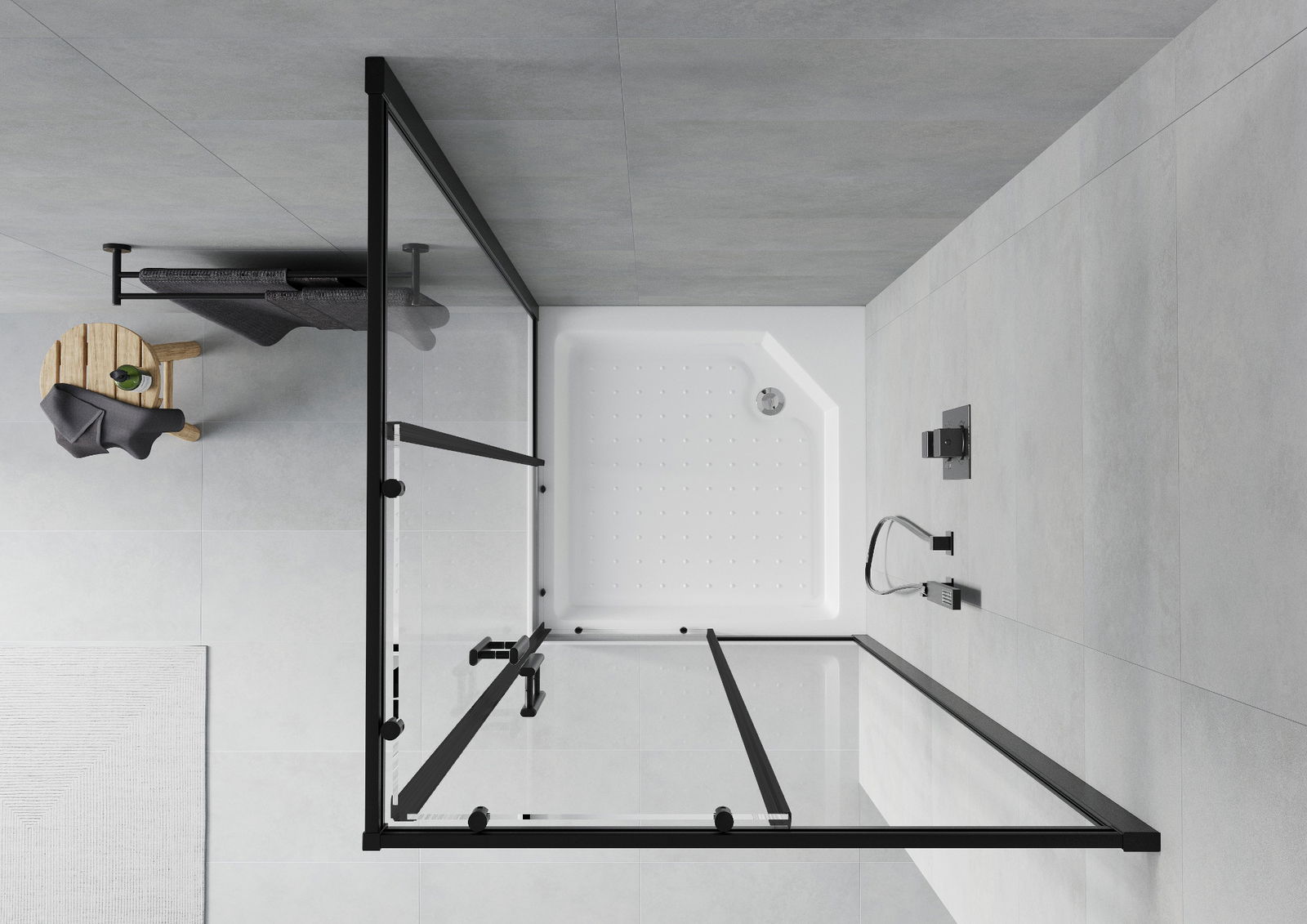 Mexen Rio čtvercová sprchová kabina 90 x 90 cm, transparentní, černá + sprchová vanička Rio, bílá - 860-090-090-70-00-4510