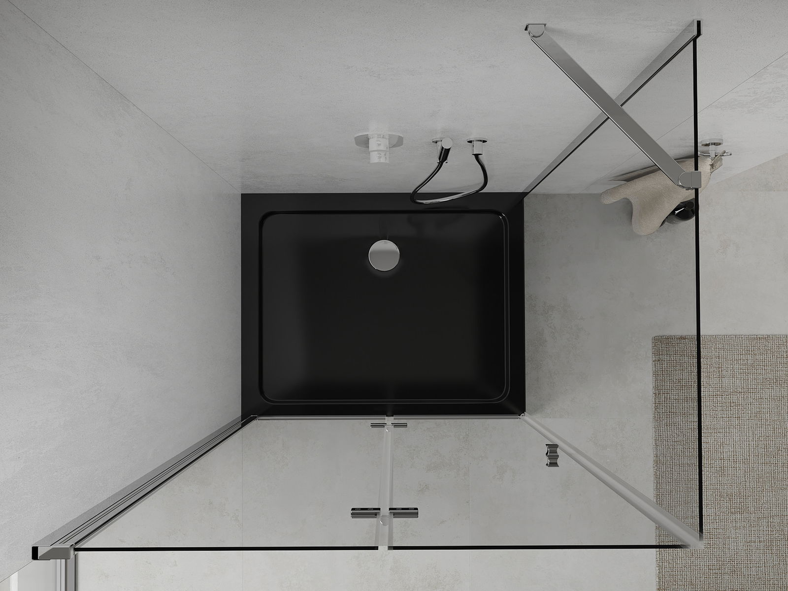Mexen Lima skládací sprchový kout 100 x 80 cm, transparentní, chrom + vanička Flat, černá - 856-100-080-01-00-4070