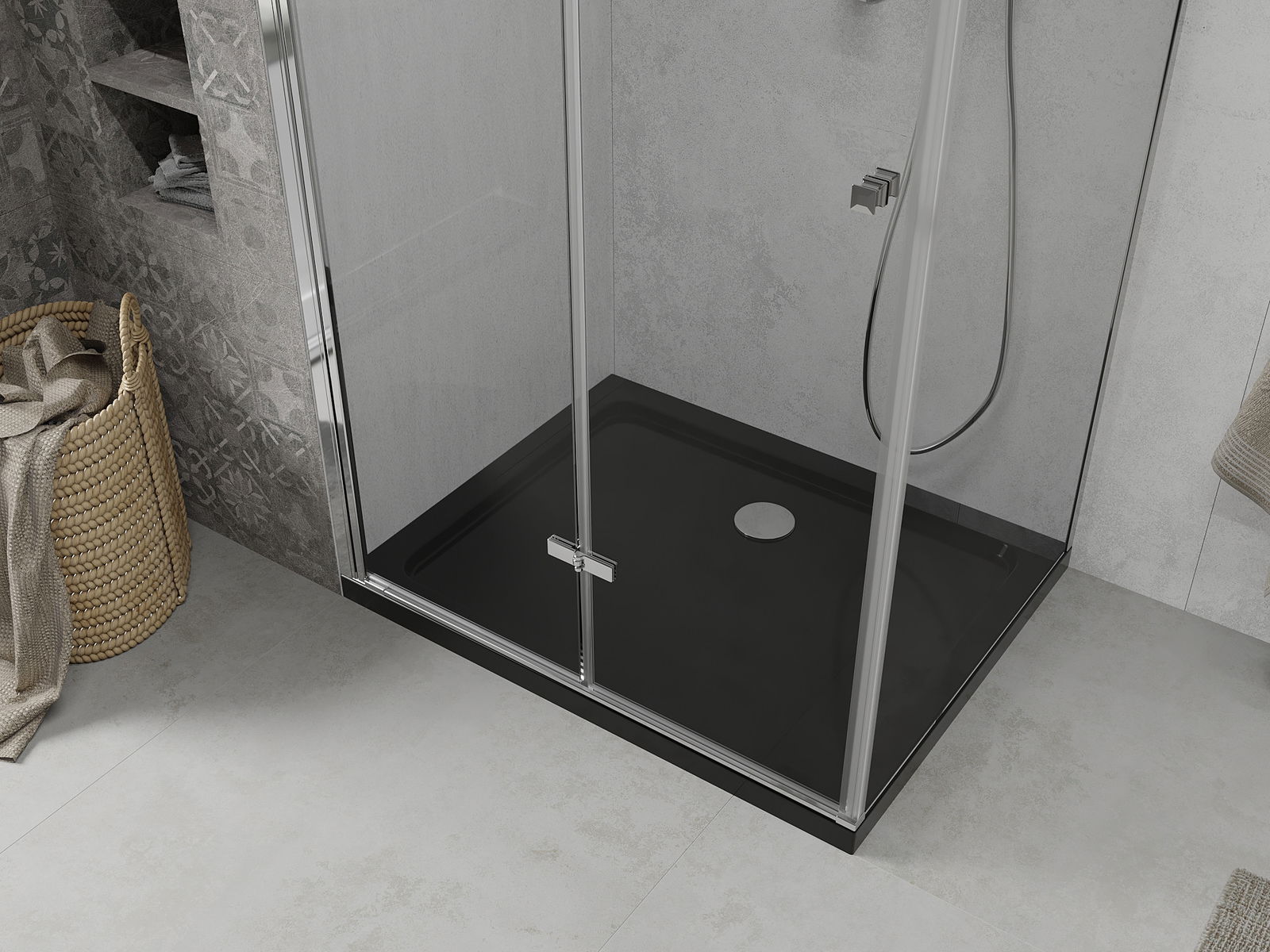 Možnost skládání dveří, jak dovnitř, tak ven, umožňuje získat více prostoru při nepoužívání sprchy. Je to ideální řešení pro menší koupelny, maximálně využívající dostupný prostor.