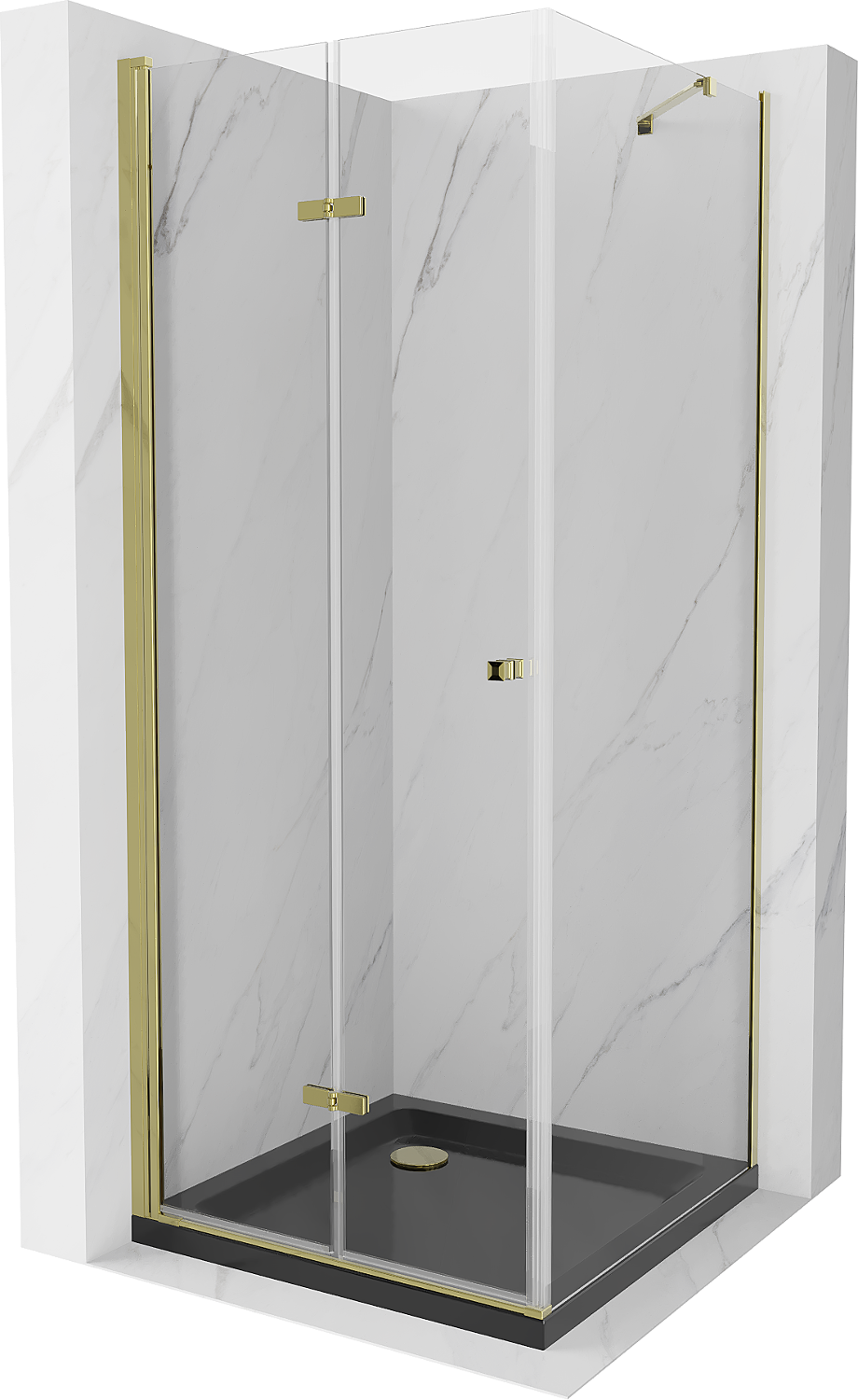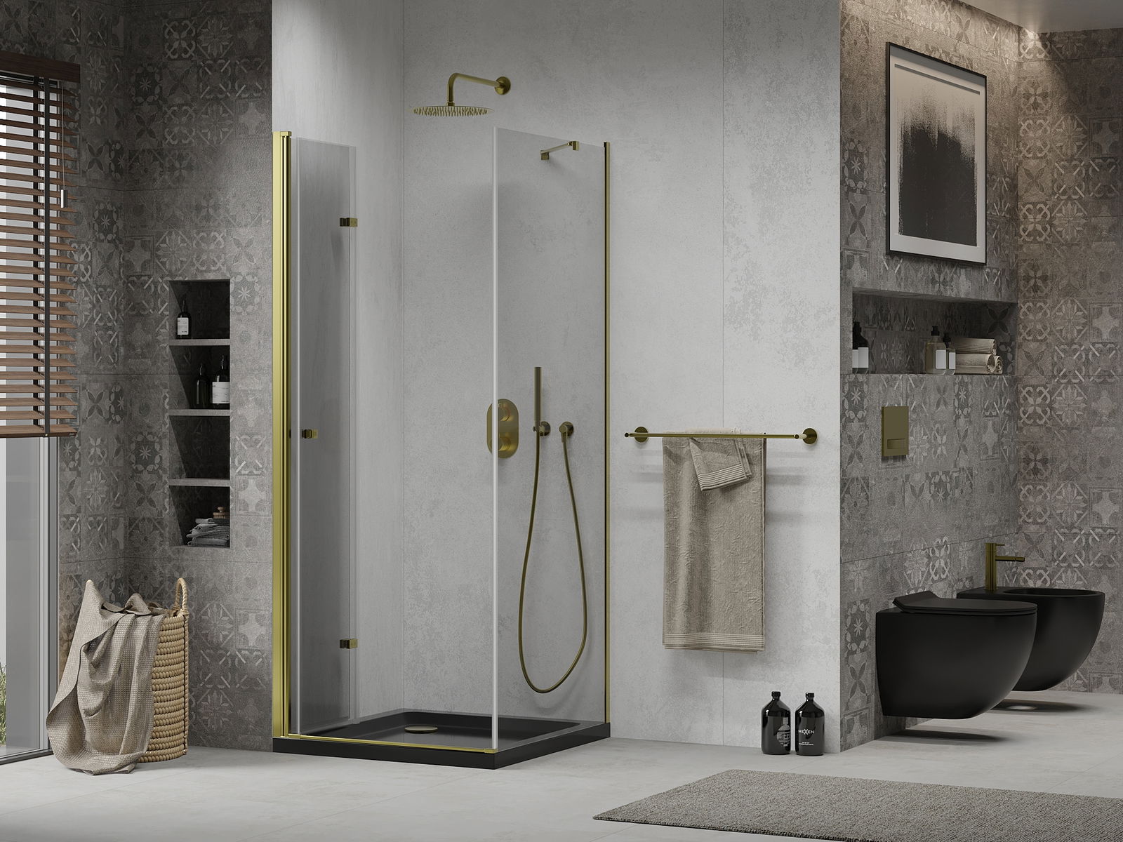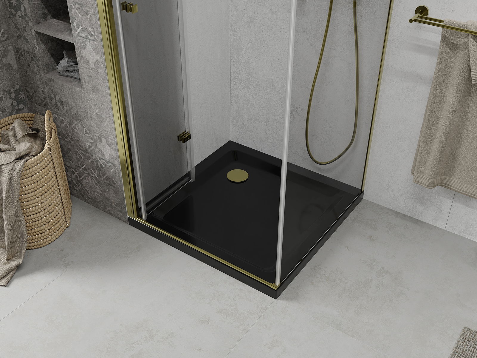 Mexen Lima skládací sprchový kout 80 x 80 cm, transparentní, zlatá + vanička Flat, černá - 856-080-080-50-00-4070G