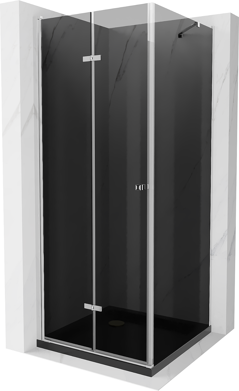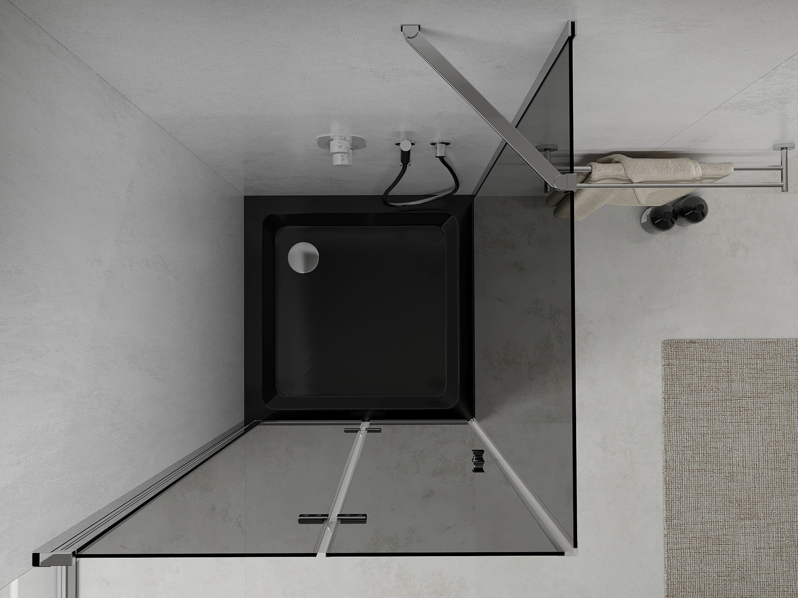 Mexen Lima skládací sprchový kout 80 x 80 cm, grafitová, chrom + sprchová vanička Flat, černá - 856-080-080-01-40-4070
