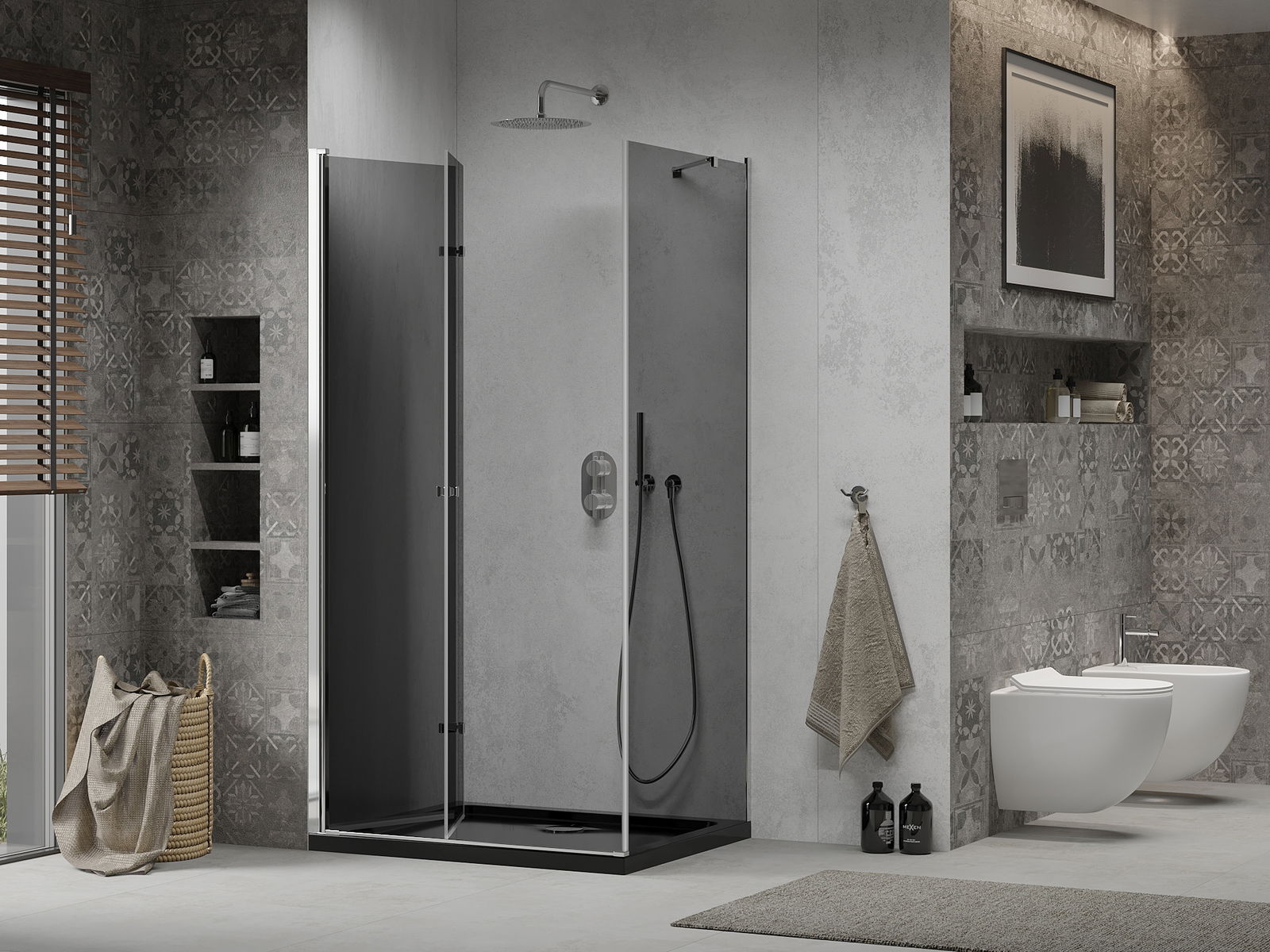 Možnost skládání dveří, jak dovnitř, tak ven, umožňuje získat více prostoru při nepoužívání sprchy. Je to ideální řešení pro menší koupelny, maximálně využívající dostupný prostor.