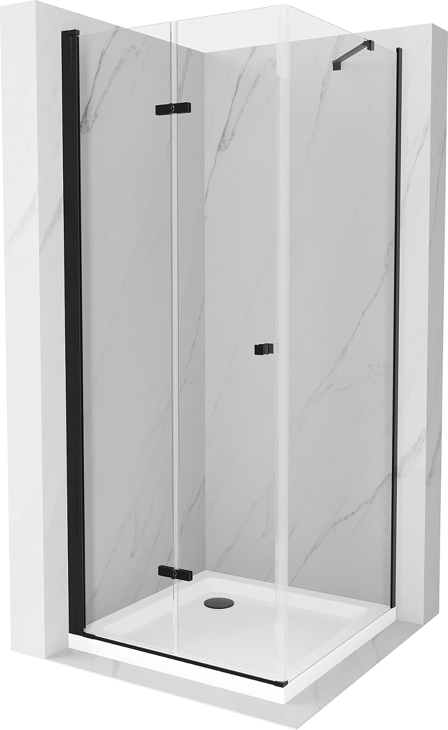 Možnost skládání dveří, jak dovnitř, tak ven, umožňuje získat více prostoru při nepoužívání sprchy. Je to ideální řešení pro menší koupelny, maximálně využívající dostupný prostor.
