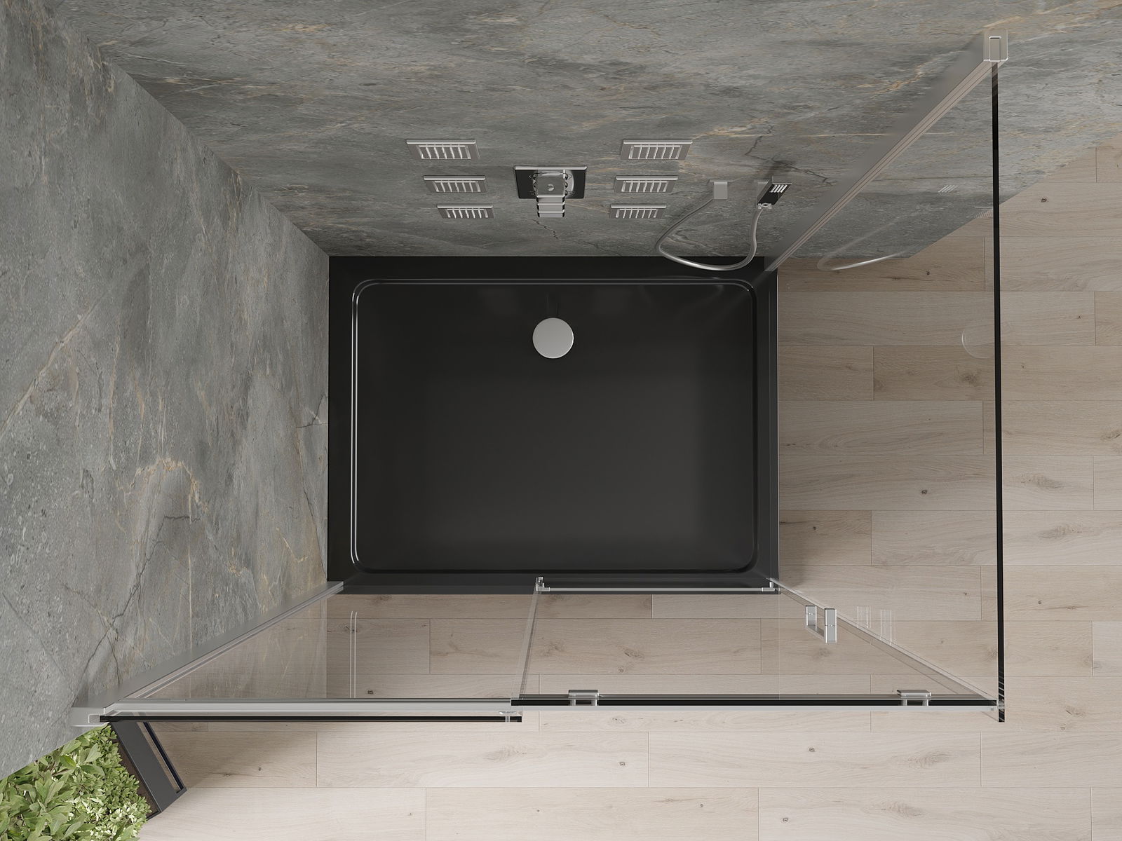 Mexen Omega sprchový kout posuvný 100 x 80 cm, transparentní, chrom + nízká vanička Flat, černý - 825-100-080-01-00-4070