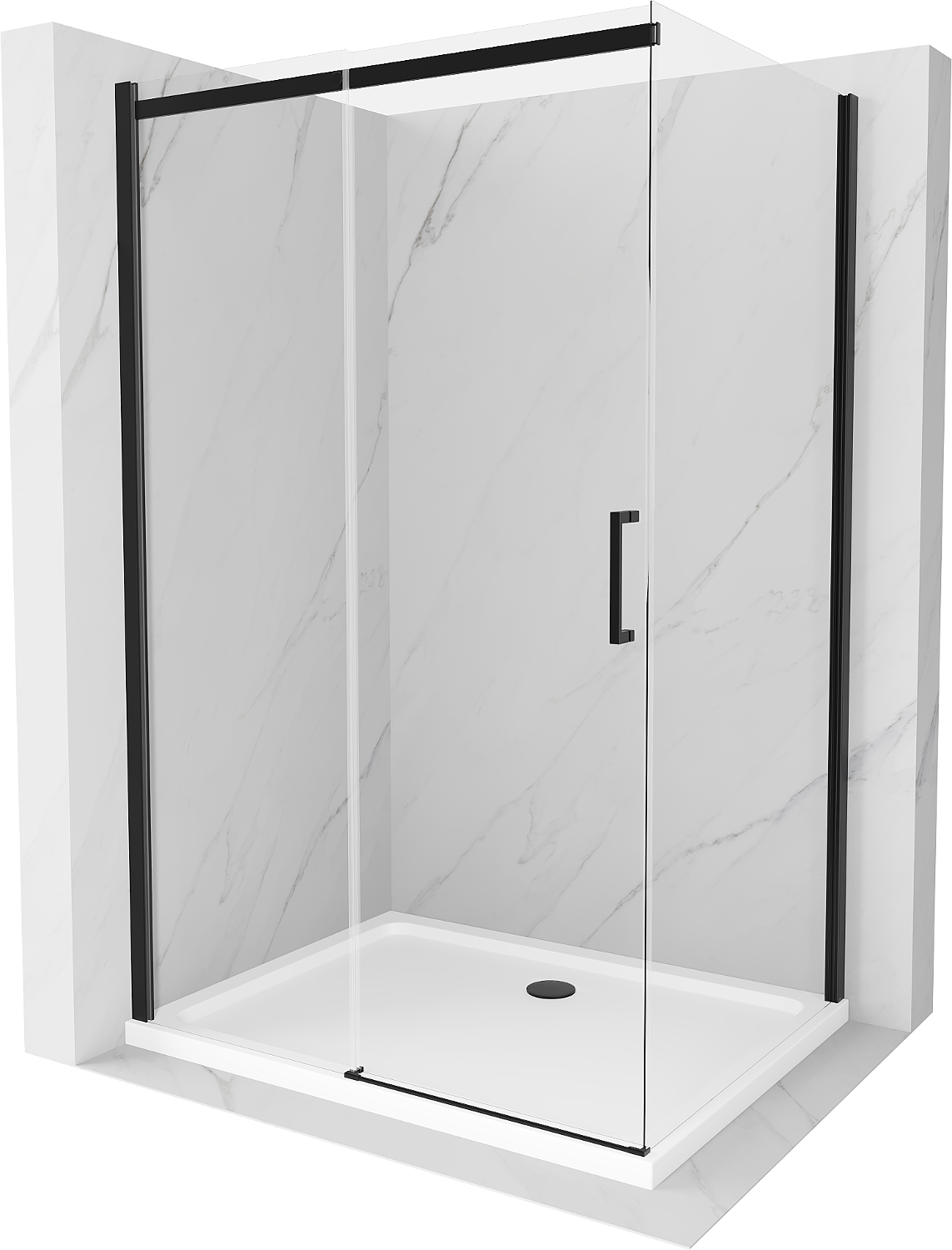 Mexen Omega sprchový kout posuvný 130 x 90 cm, transparentní, černý + vanička Flat, bílá - 825-130-090-70-00-4010B
